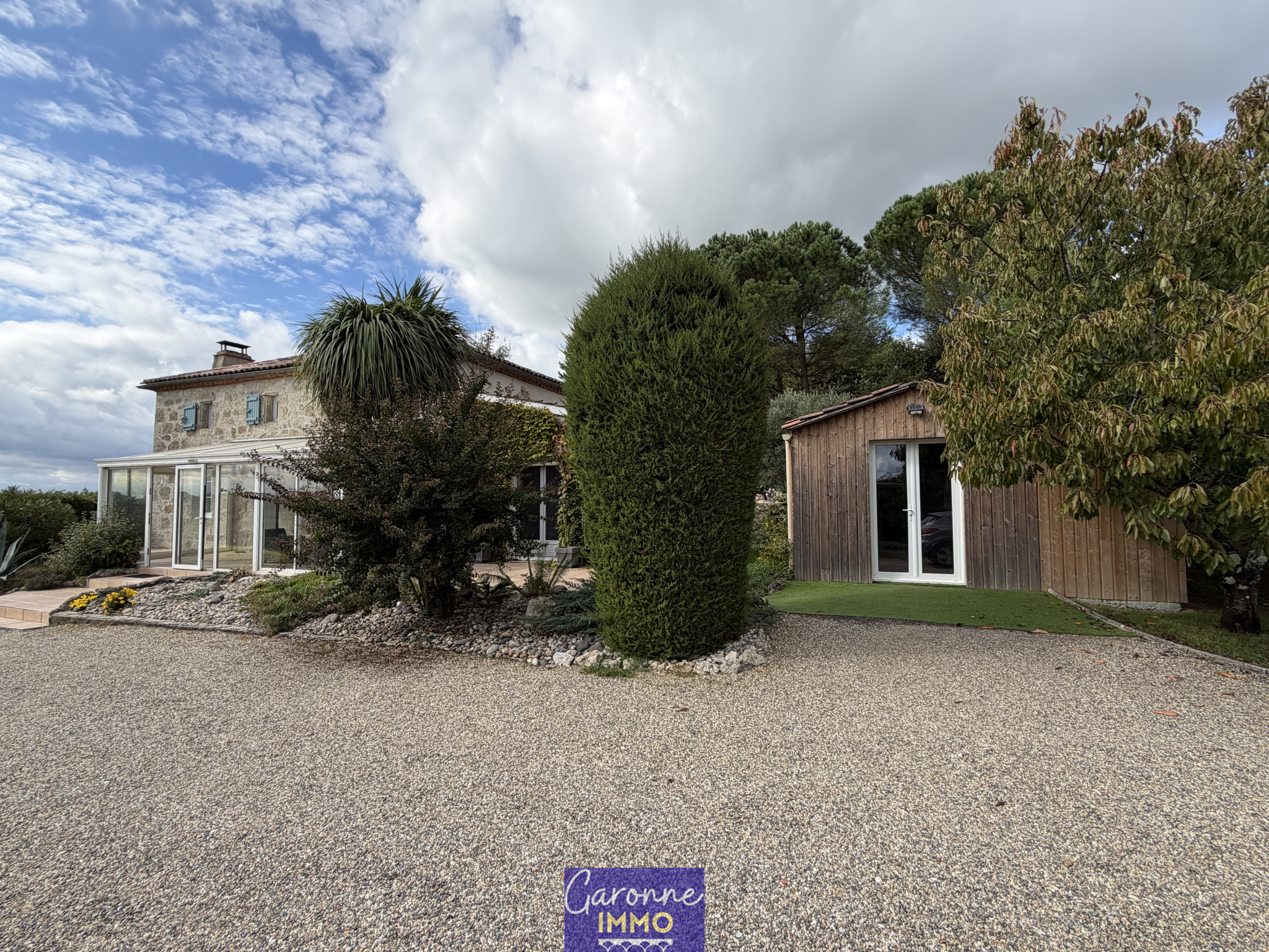 A 13 kms du centre ville d'AGEN - Dans un environnement de campagne bénéficiant d'une vue panoramique dans le calme et l'attrait d'un charmant village, vous succomberez sous le charme de cette propriété qui a toutes les qualités de prestati...