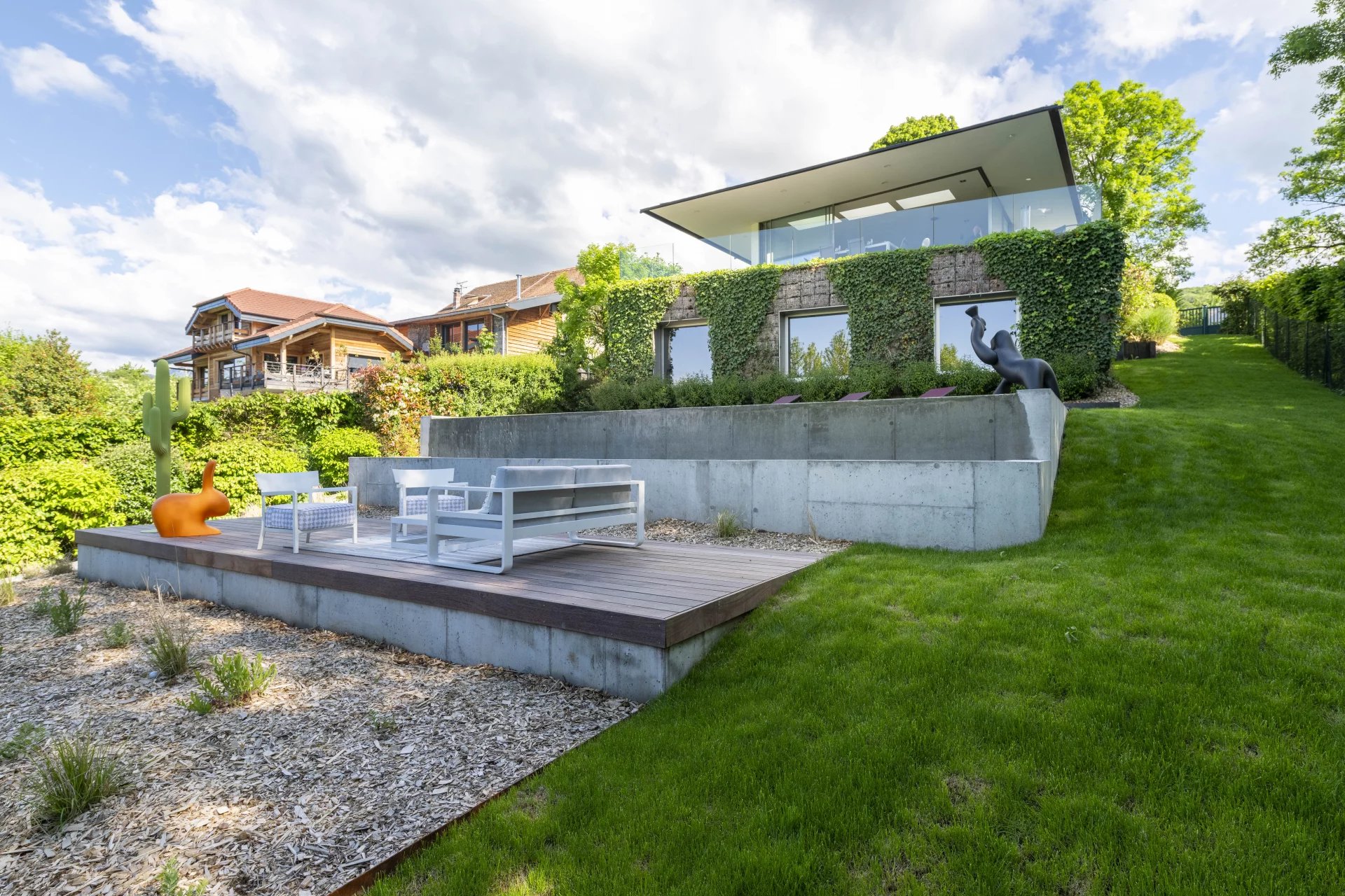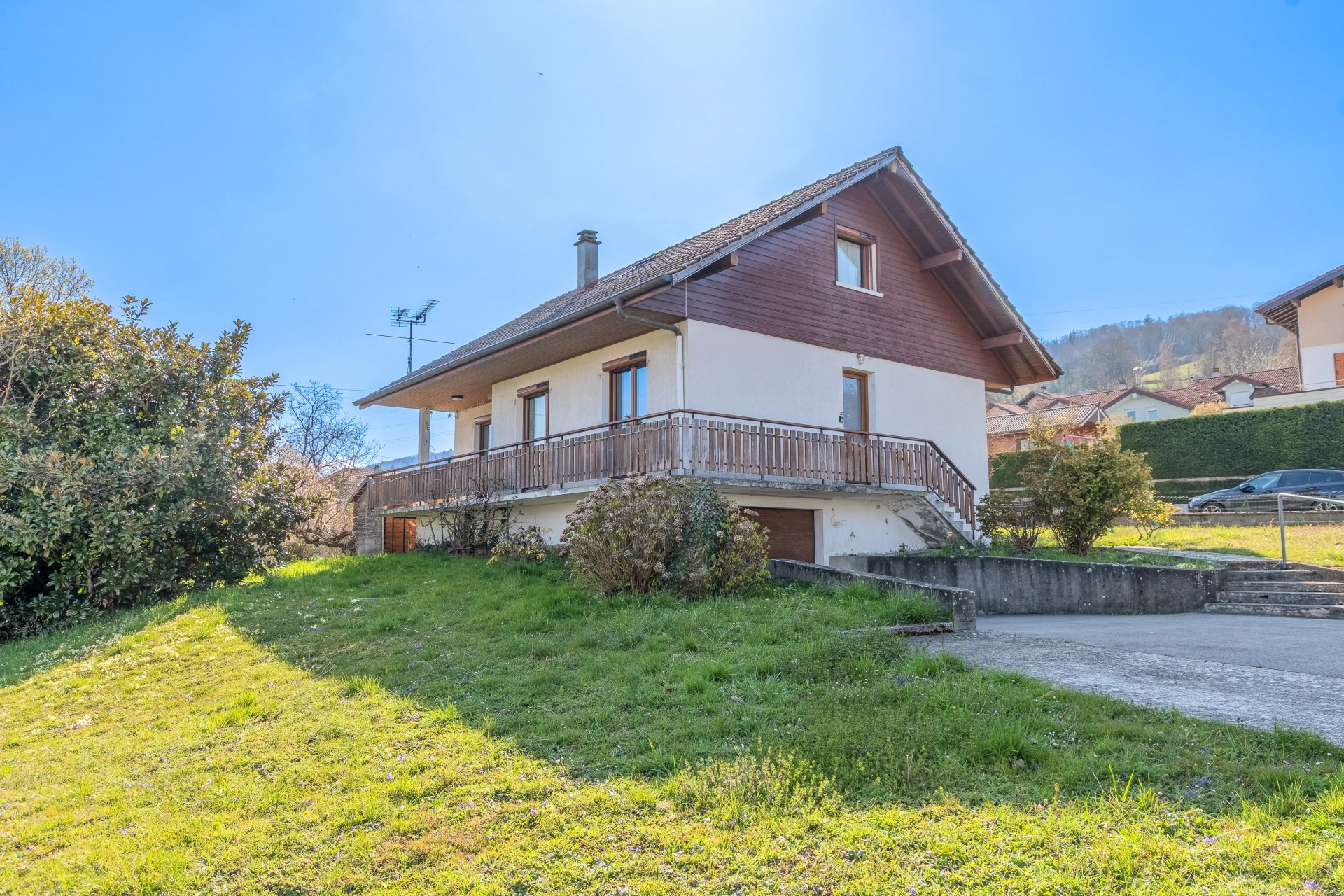Nichée au fond d’une impasse confidentielle sur la commune de Publier, cette propriété édifiée en 1978 s’inscrit sur un terrain de 1 410 m², offrant calme absolu.