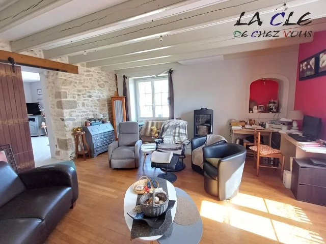 Cette maison ancienne est composée au rez-de-chaussée d'une cuisine avec cheminée, un salon, un cellier, une salle de bain et des toilettes.