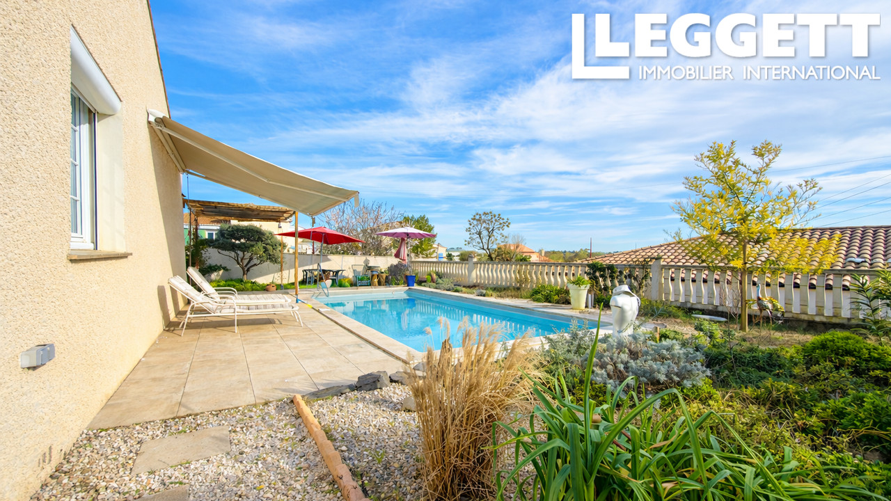 A42917DAL34 - Située à l'angle d'un quartier résidentiel, cette maison mitoyenne de plain-pied offre plus de 85 m² habitables et est implantée sur un terrain de 580 m² avec jardin entourant la propriété et piscine. À l'intérieur, la véranda couv...