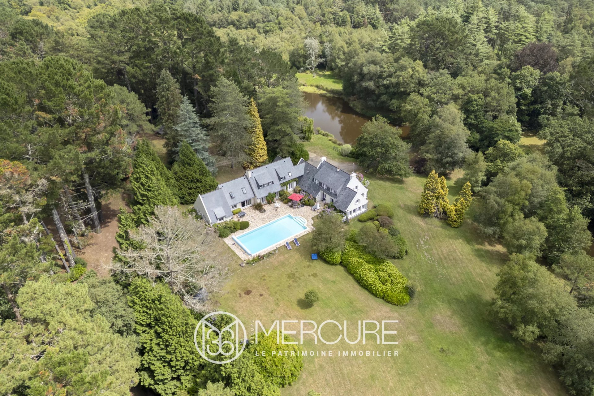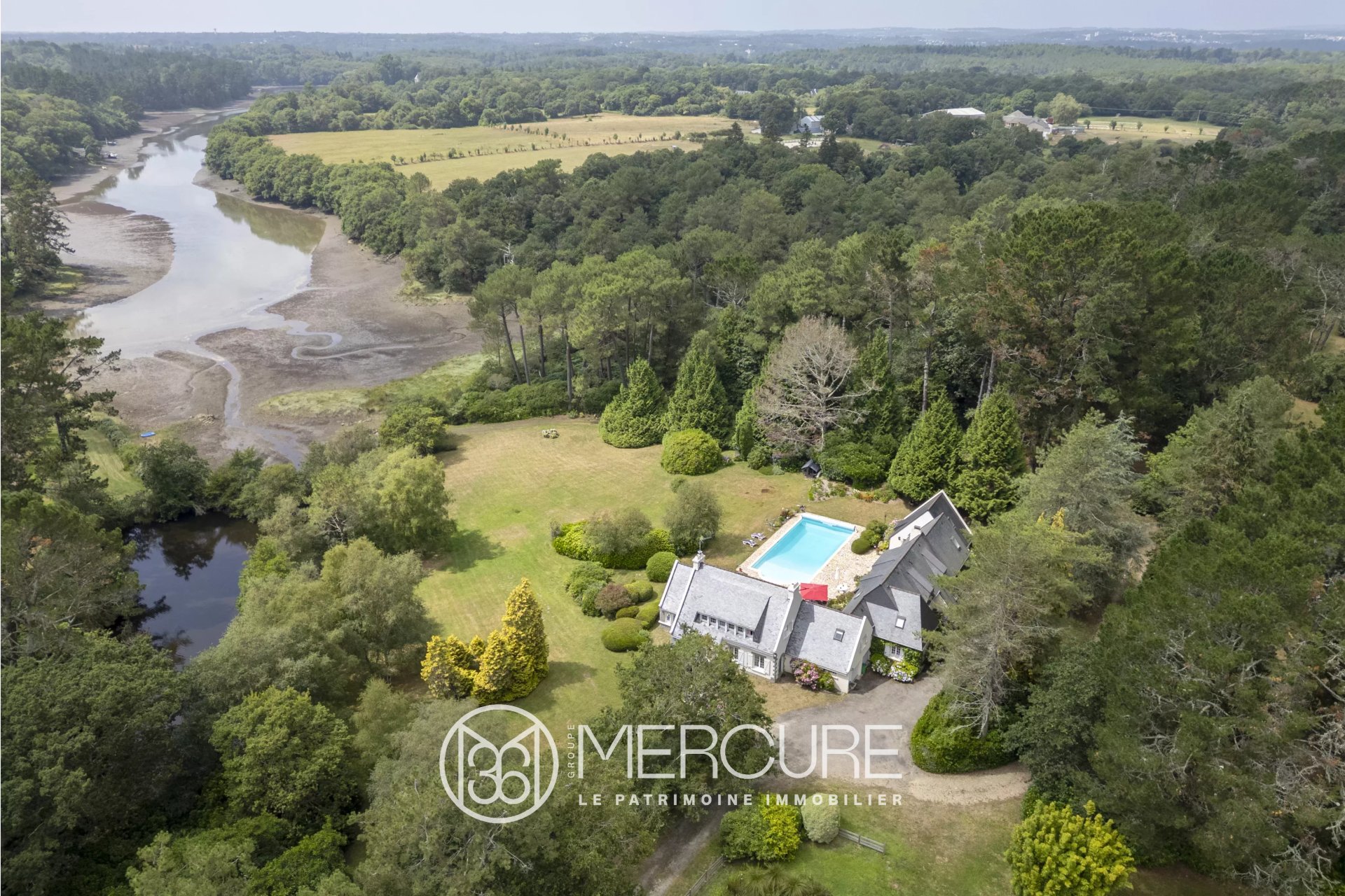 Dans une boucle de l’Odet, sur la rive gauche, ensoleillée, propriété sur un vaste ensemble foncier d’environ 15ha planté de beaux arbres, avec un accès direct à l’eau. Ce site magnifique et totalement préservé enserre la maison d'environ 400m² édifiée à ...