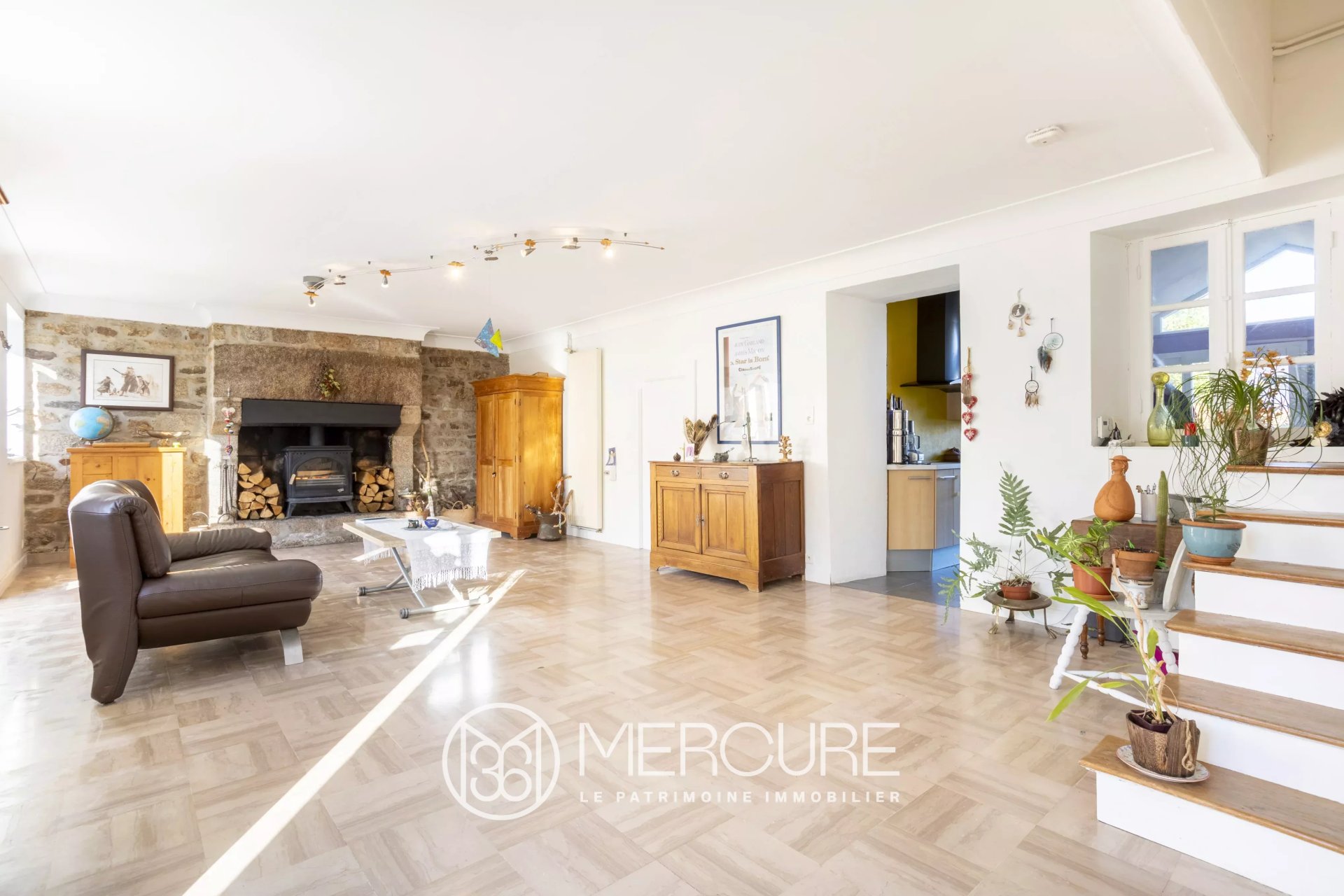 Quimper centre ville, emplacement prisé pour cette belle maison de caractère, entièrement rénovée avec gout et qualité, offrant une entrée, séjour salon avec poêle à bois, s'ouvrant au Sud sur terrasse bois et jardin clos de murs en pierres sur 275 m², cu...