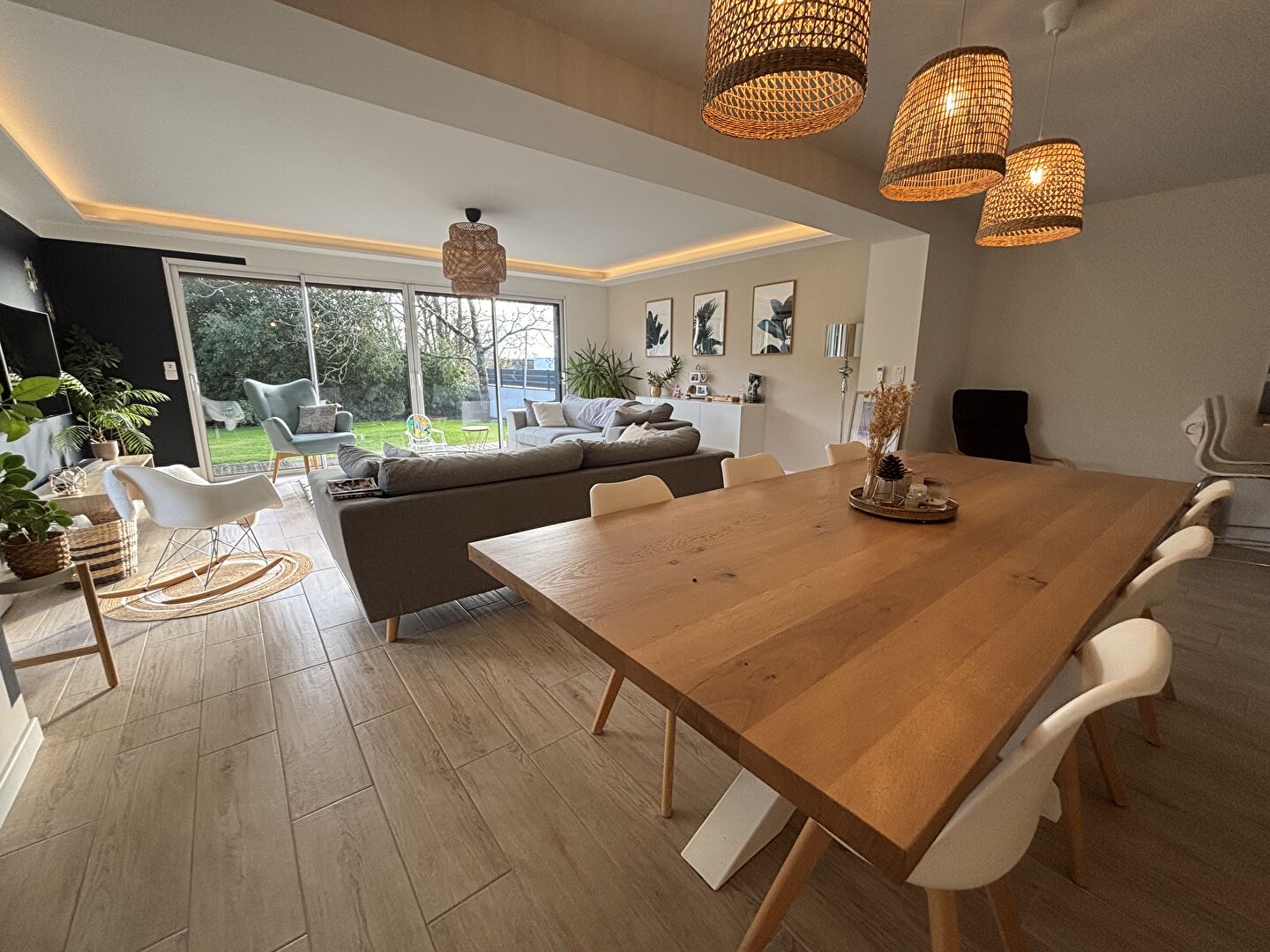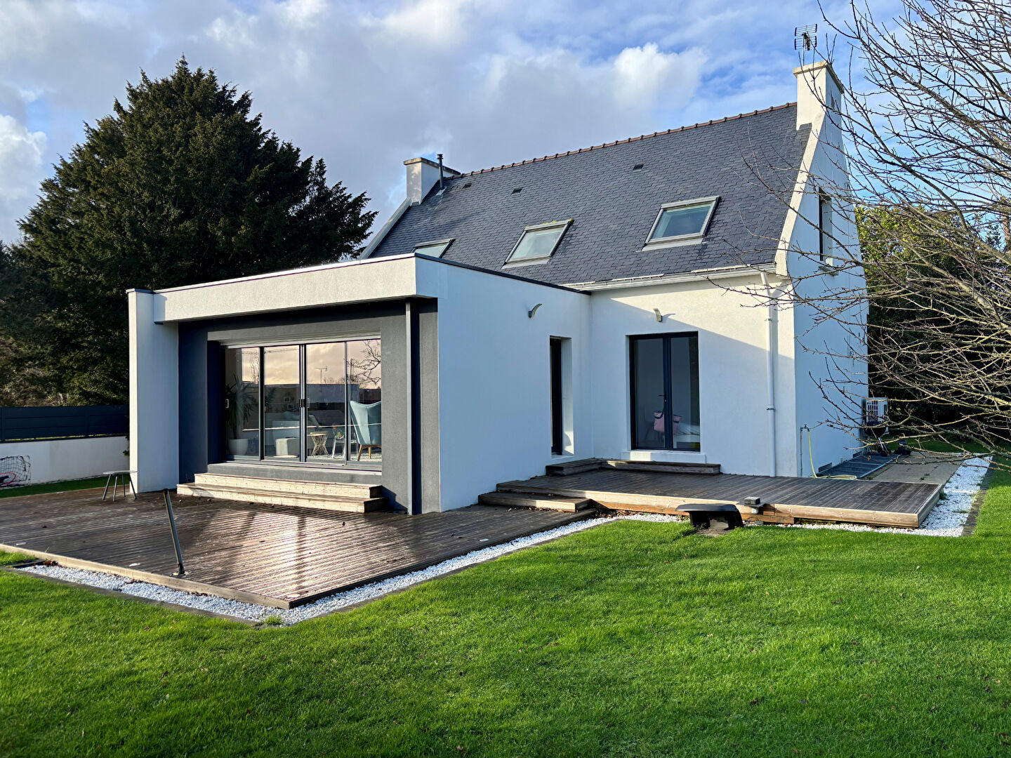 NOUVELLE EXCLUSIVITÉ, Quimper Sud, Kernoter, secteur prisé pour cette belle maison sur sous sol complet, intégralement rénovée, offrant un hall, séjour salon en extension s'ouvrant sur terrasse au Sud et jardin clos, cuisine aménagée et équipée, chambre p...