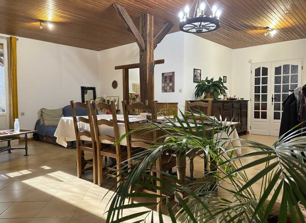 Elle séduira les familles en quête d'une spacieuse pièce de vie lumineuse donnant sur une belle terrasse et une cuisine équipée (à rafraîchir).