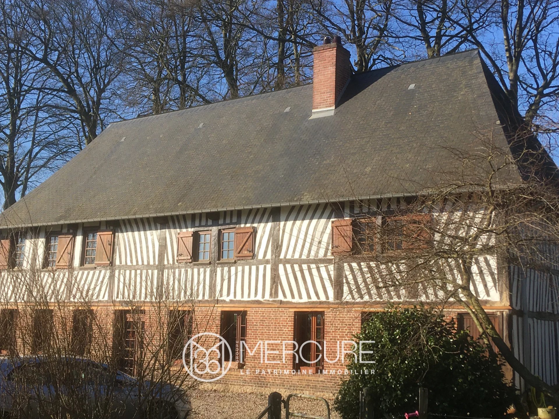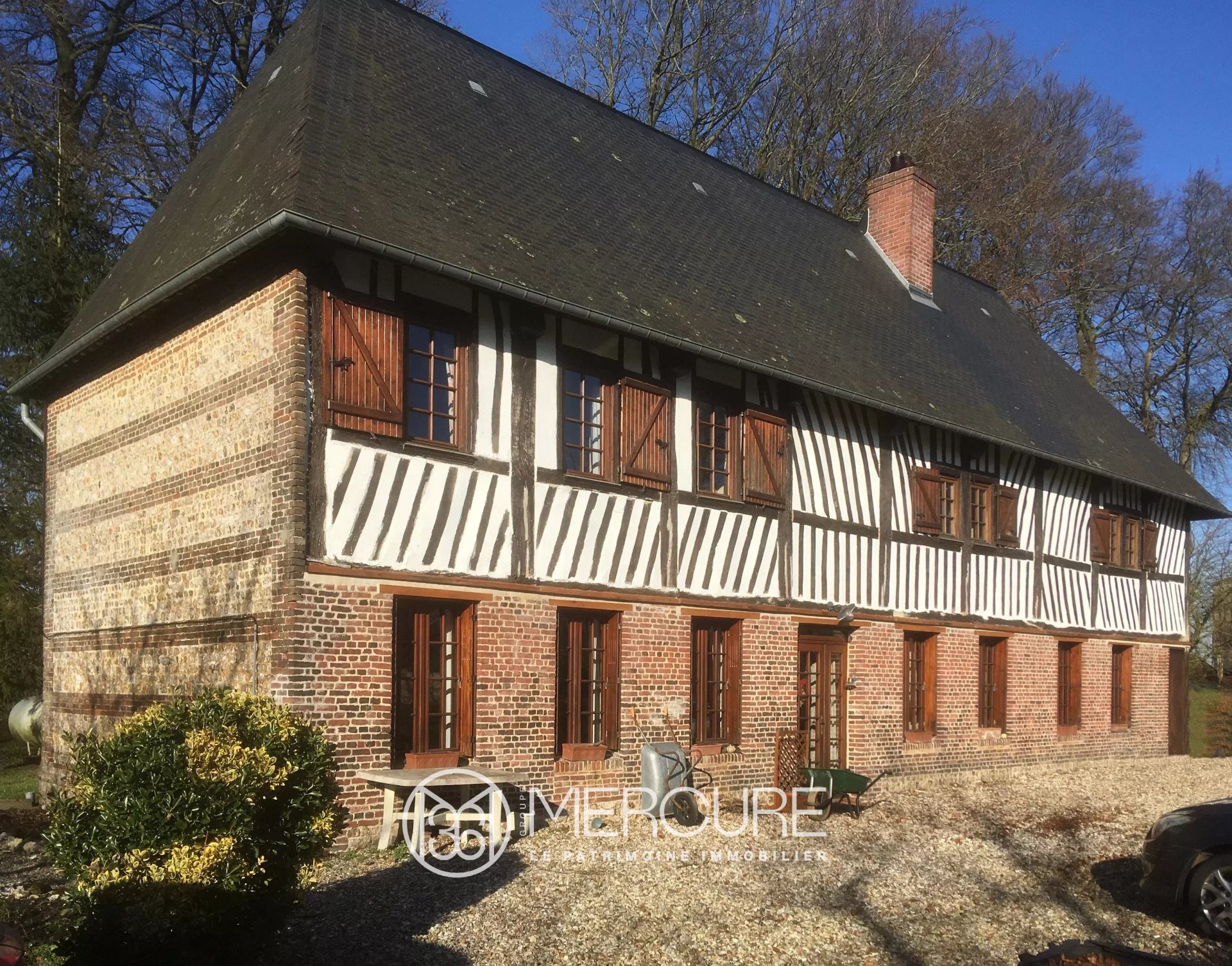 Seine-Maritime, à proximité de Bolbec, à 25 km de la mer, belle maison du début du XIXe siècle, à colombages, briques et silex sur trois niveaux développant environ 125 m² en quatre pièces principales, dont trois chambres et deux vastes greniers (environ 150 m...