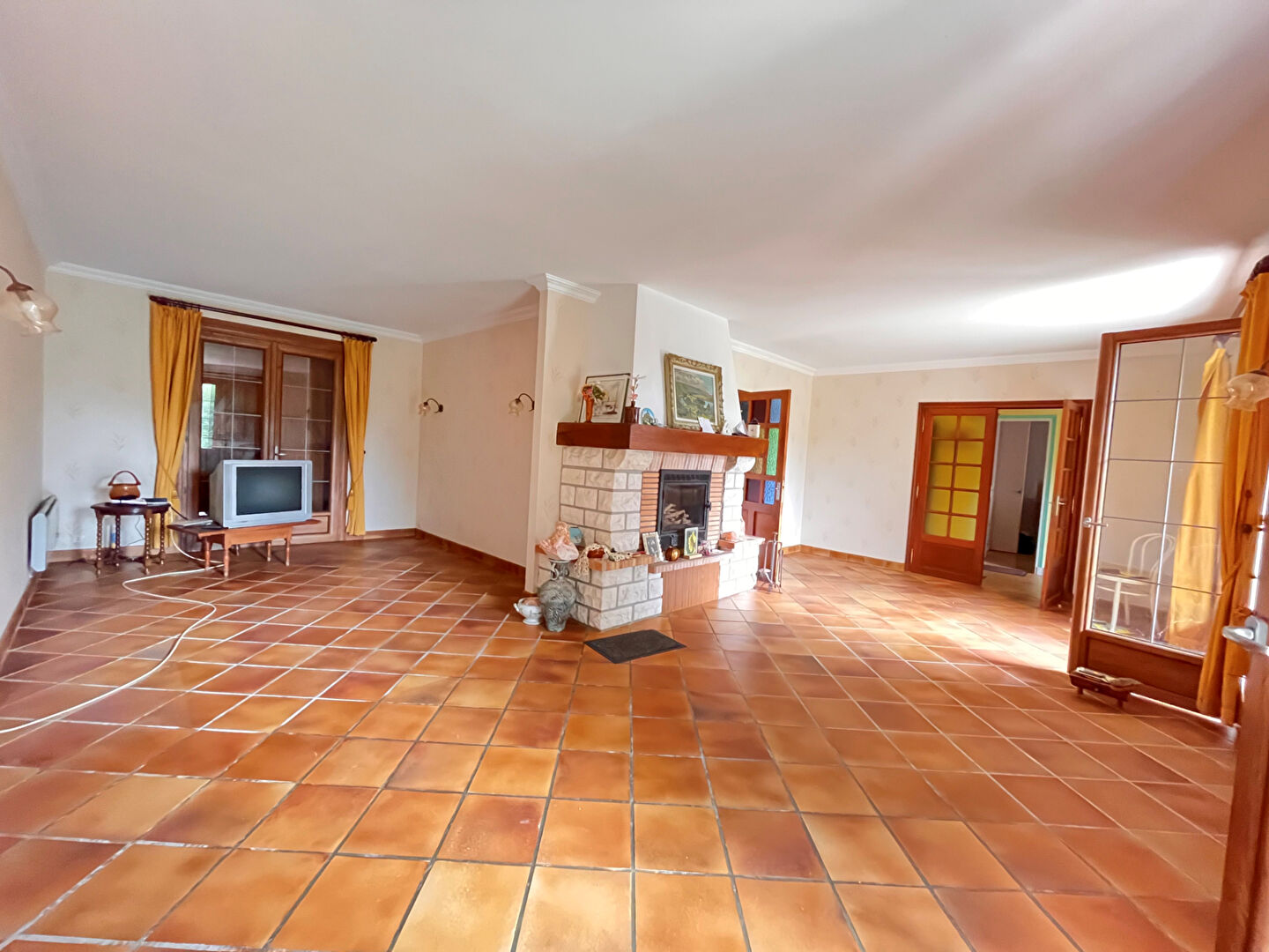 Aujourd'hui, entrée dans véranda, dégagement desservant séjour avec cheminé...