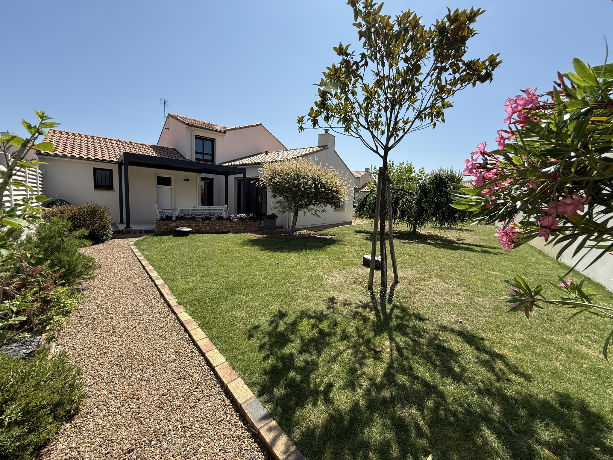 Nouveauté seulement chez NSI Rezé Saint-Paul au calme proche de toutes les commodités rare plain-pied de qualité sur un terrain paysagé de 504m² avec studio en dépendance.
