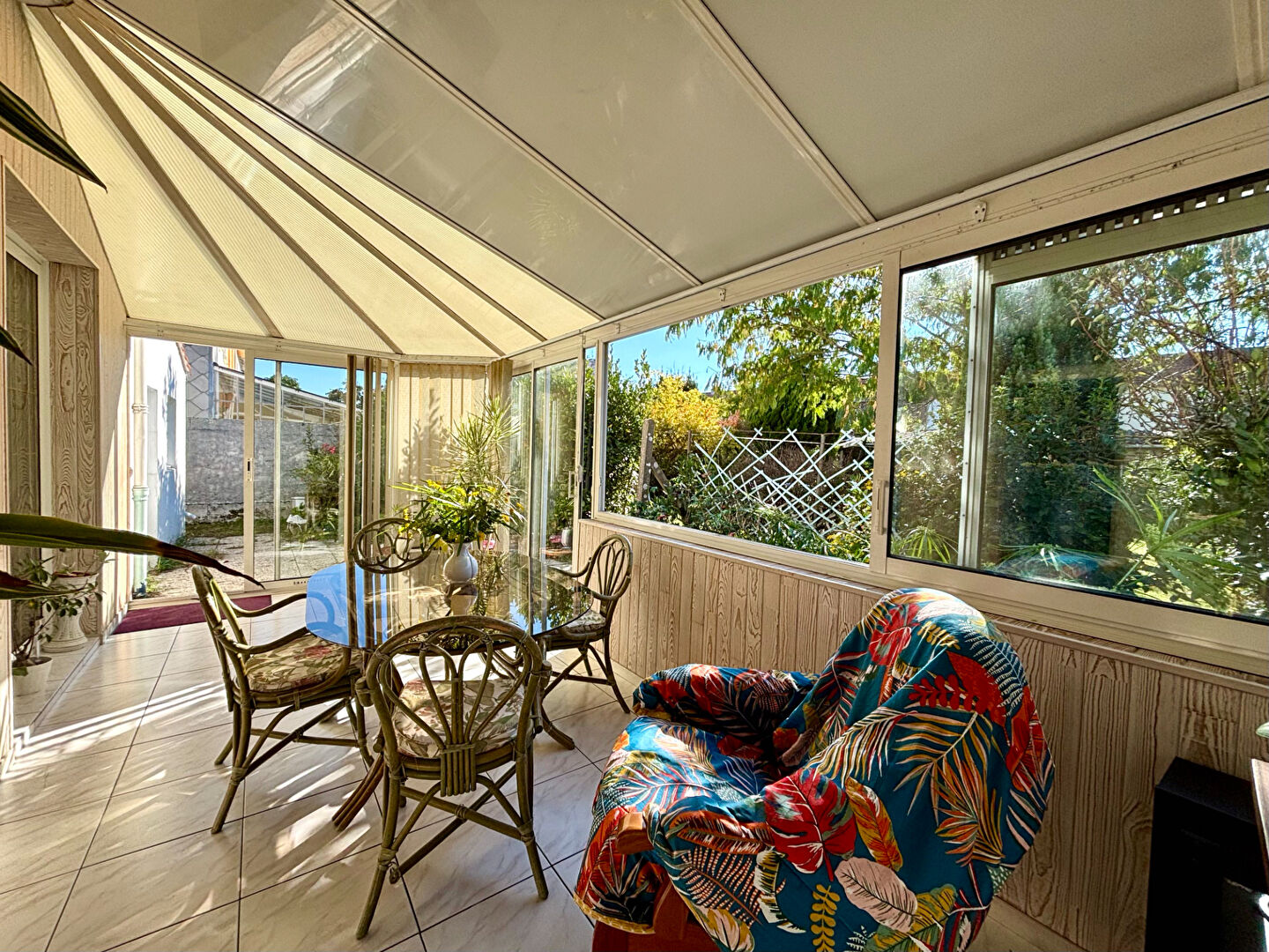 Le rez-de-chaussée offre une cuisine indépendante, un séjour lumineux ouvrant sur une véranda donnant sur un jardin clos et arboré exposé sud-ouest. Des toilettes séparées...