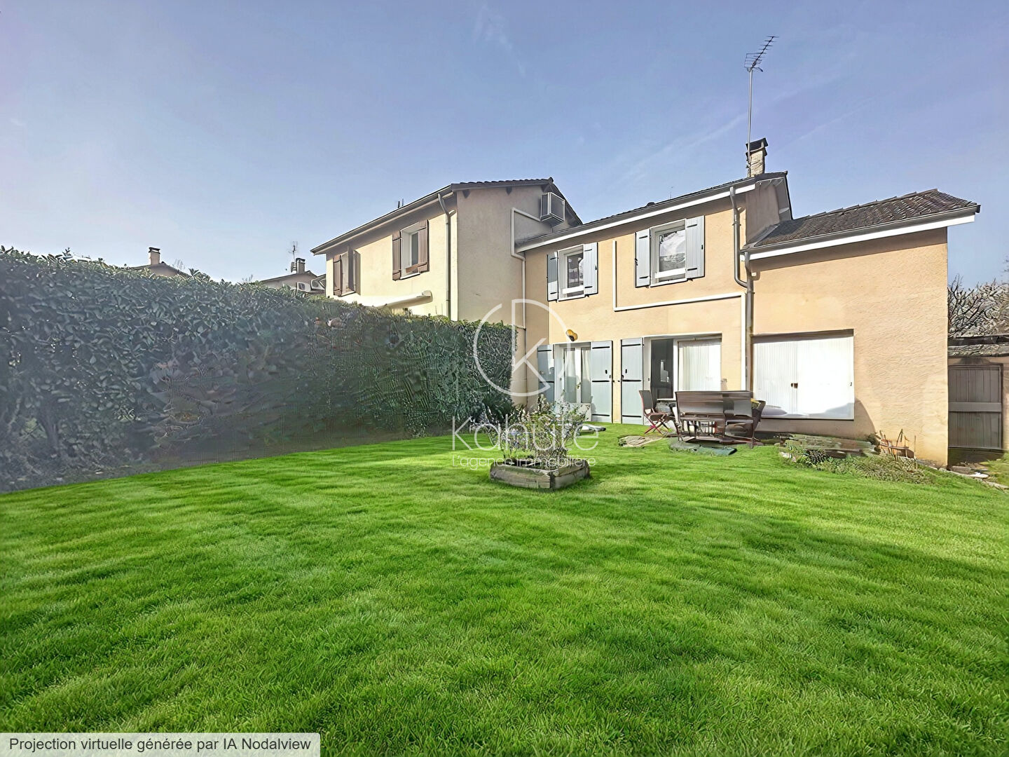 Située dans une impasse, cette maison Phénix de 1975 offre un environnement calme et sans vis-vis. Elle est édifiée sur une parcelle arborée de 585 m² et développe environ 118 m² habitable et 163 m2 au sol répartis sur deux niveaux.