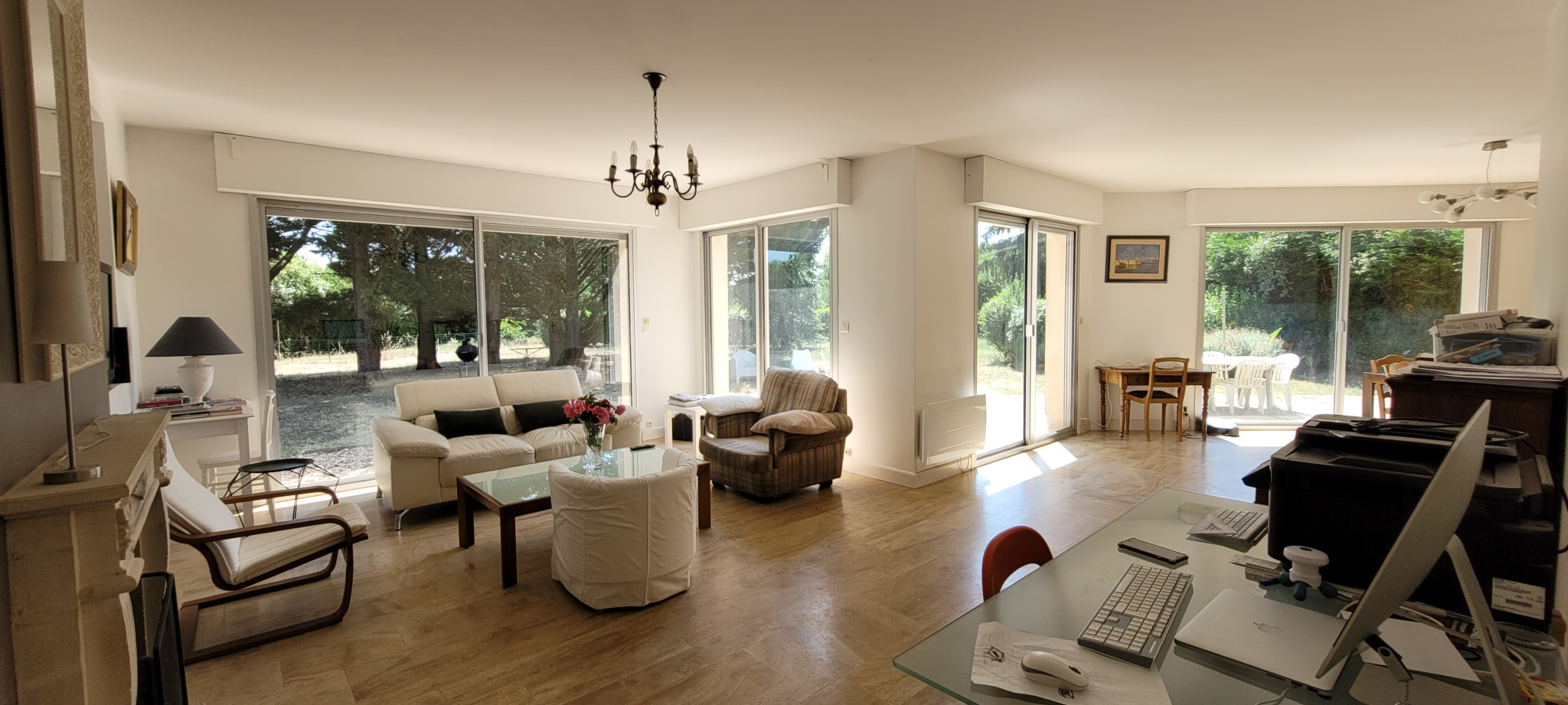 ELLE VOUS OFFRE DE PLAIN-PIED UNE MAGNIFIQUE PIECE A VIVRE DE 49 M2 ENV AVEC CHEMINEE AGREABLEMENT ORIENTEE ...