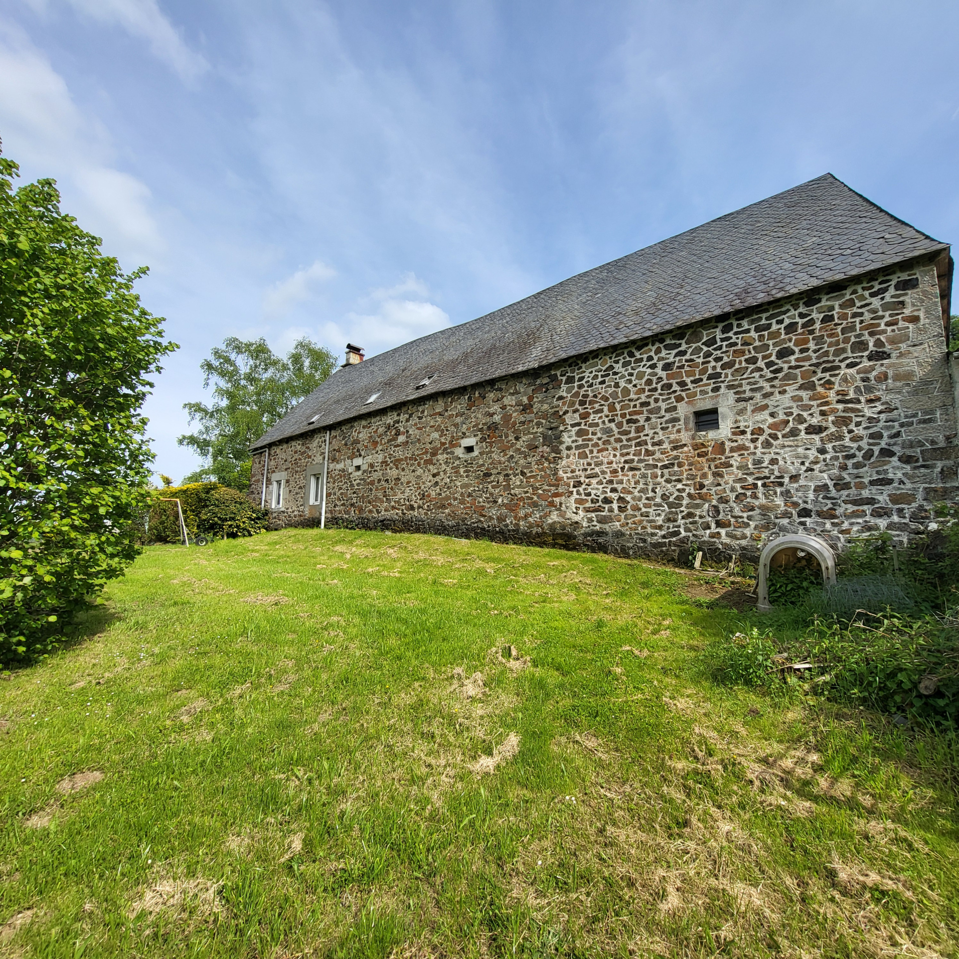 Sur 1563 m2 de terrain, maison avec sa grange, toute en pierres, couverte en ardoises.