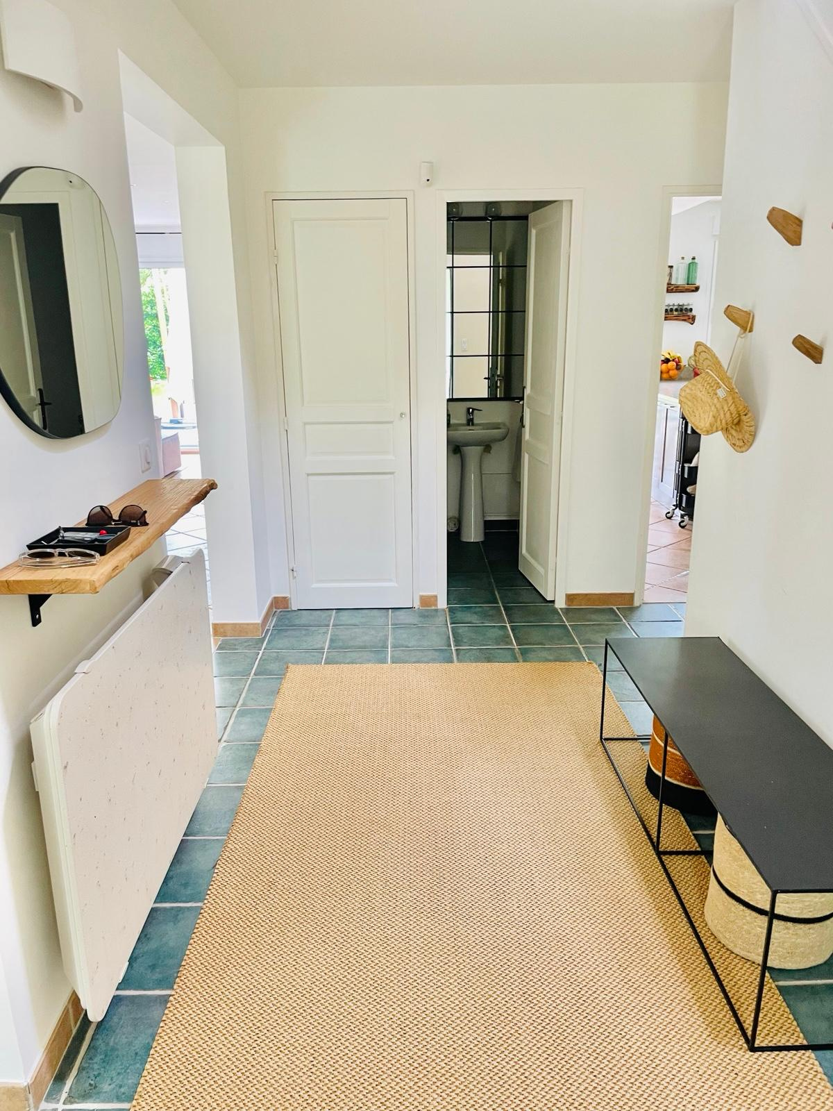 Agrèable maison famililale entièrement rénovée par ses propriétaires actuels. Au rez-de-chaussée, vous trouverez une belle entrée avec dressing et toilettes, une pièce de vie d'environ 70 m2 avec une cheminée centrale et un accès direct à une terrasse ple...
