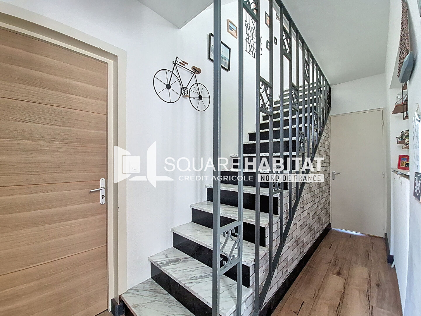 Proche du quartier Sainte Rictrude, accès facile Lezennes et Villeneuve d'Ascq, Large maison ancienne avec accès voute cochère sur cour intérieure pavée, elle offre au rez de chaussée, un hall vitré s'ouvrant sur le salon avec insert à bois en front ...