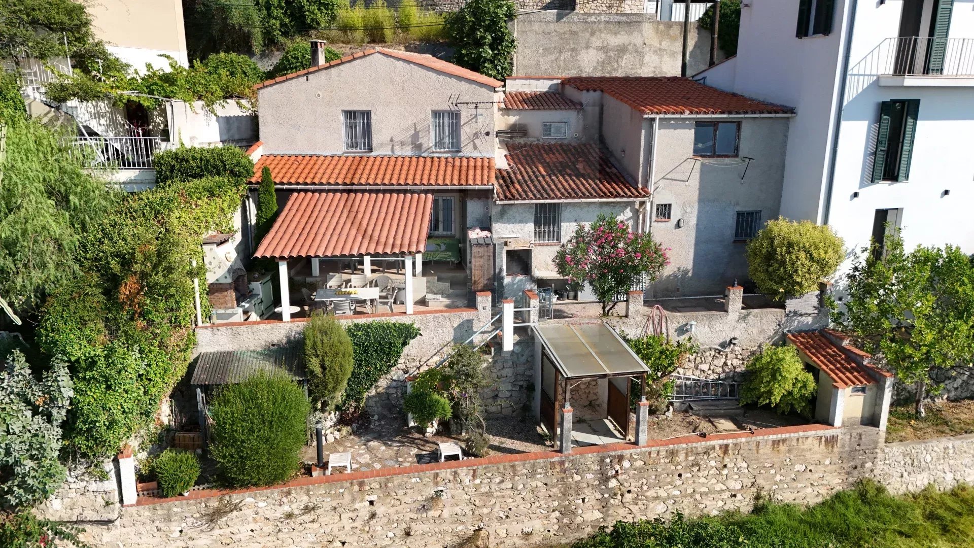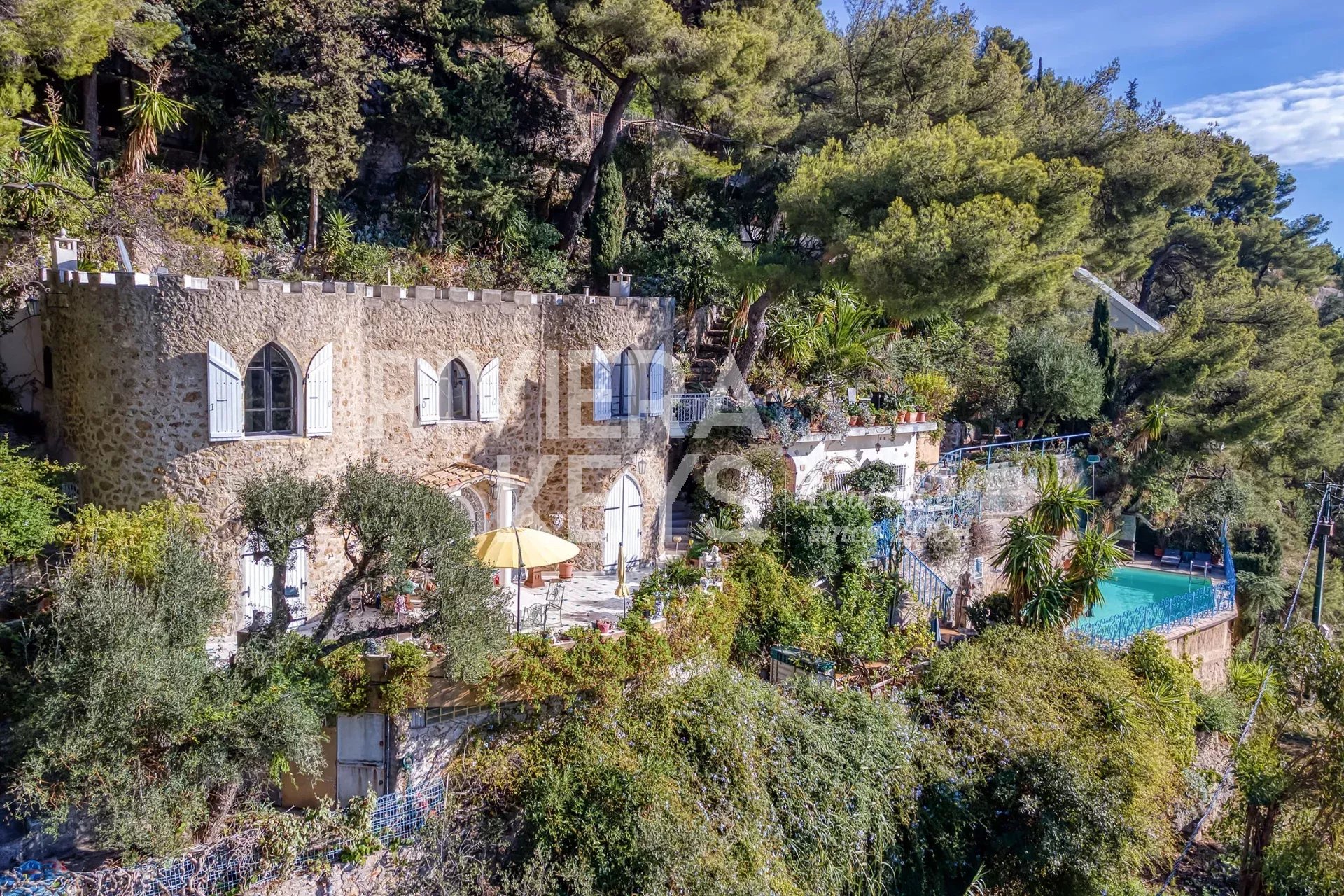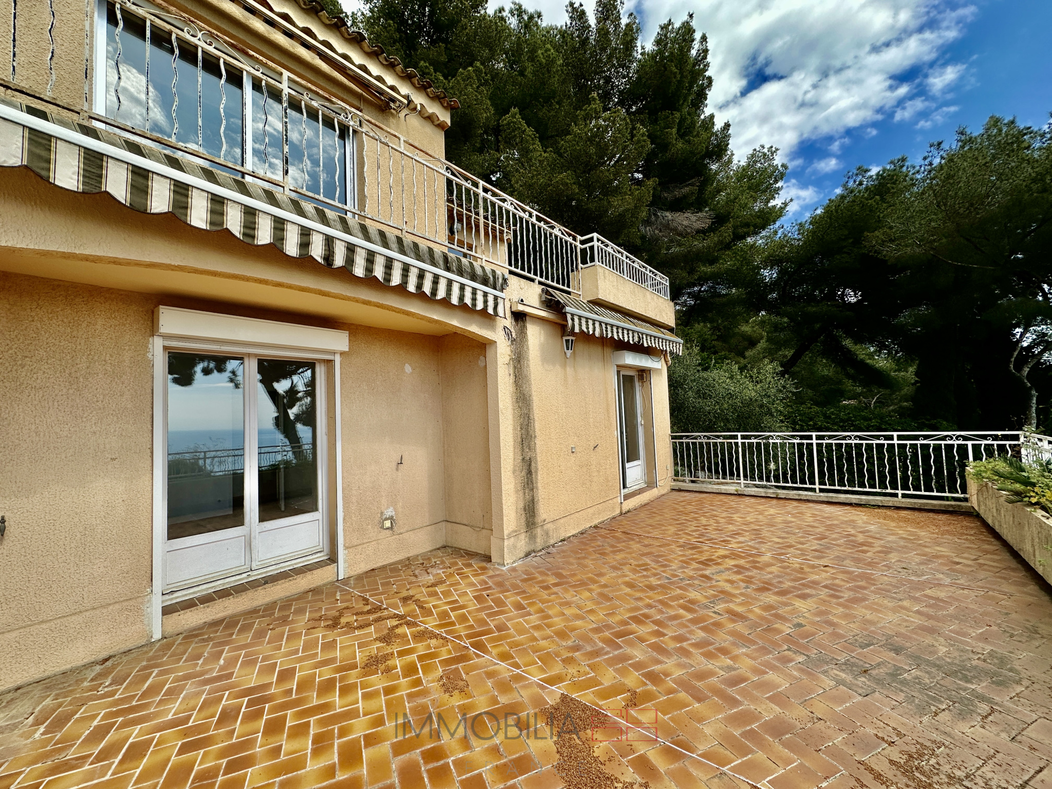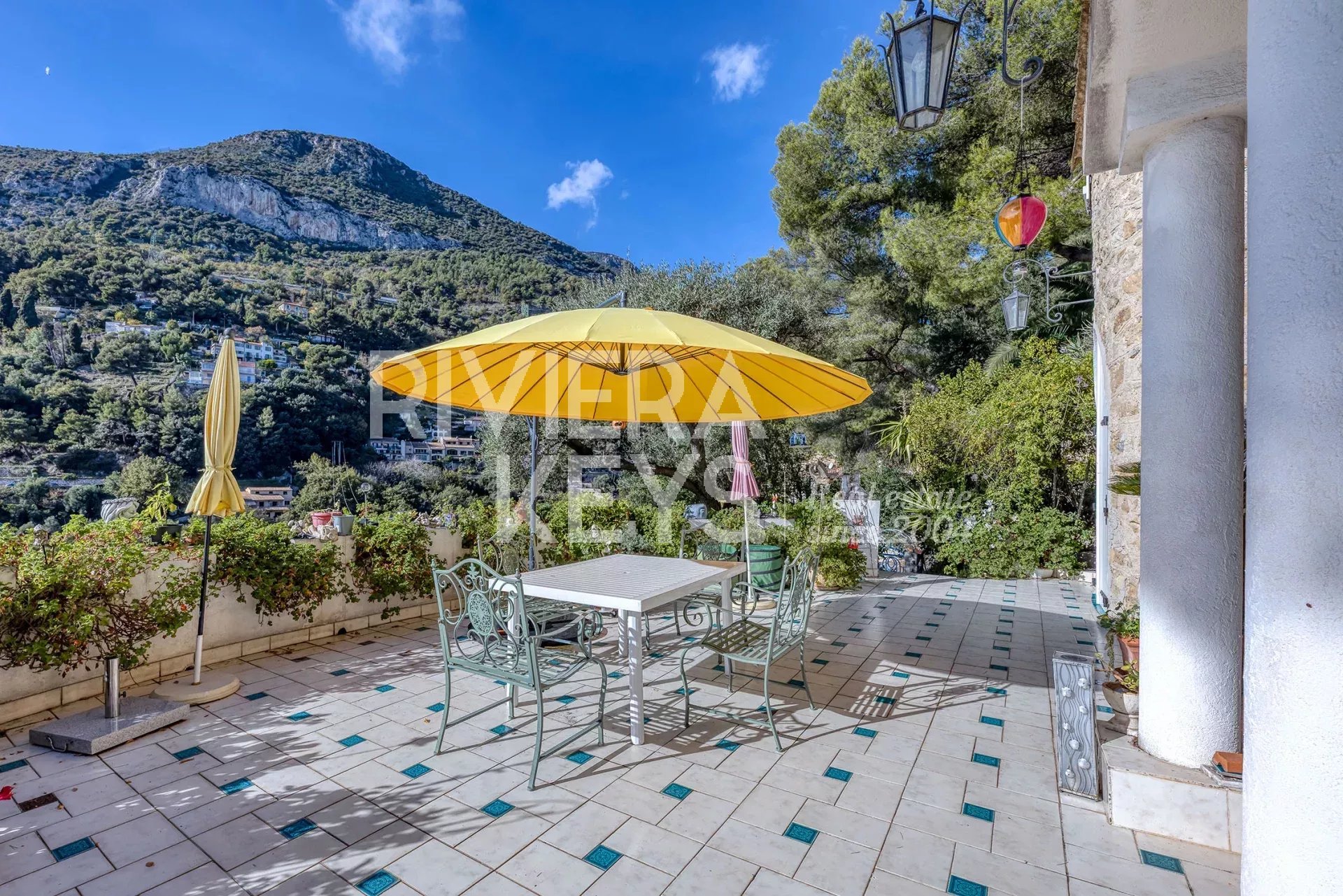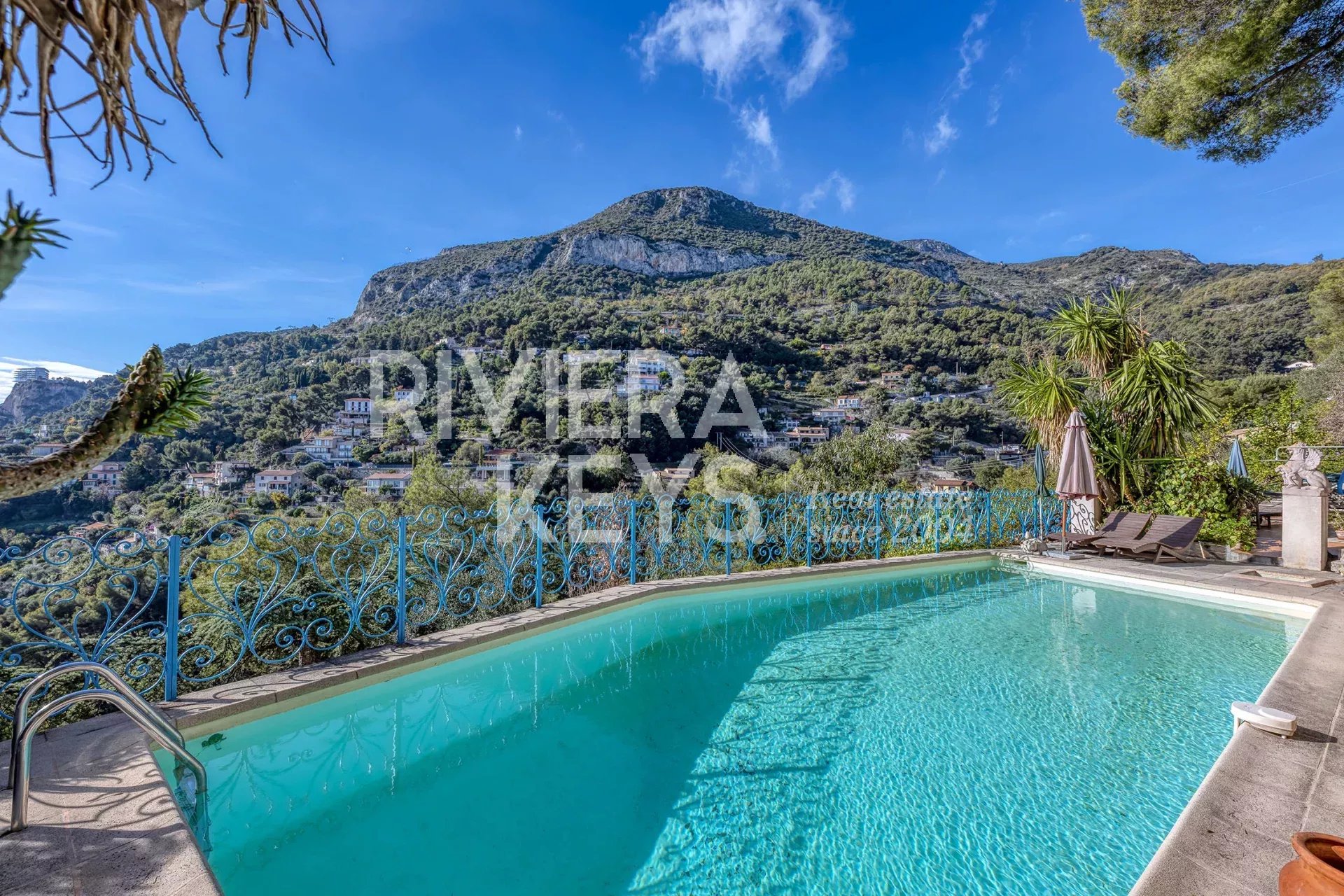Magnifique maison de 96m2 sur le plateau du cap martin, comprenant 3 chambres, deux salles de douche, une cuisine équipée ouverte sur un vaste salon, un pigeonnier, un grand garage, une buanderie et une cuisine d'été
