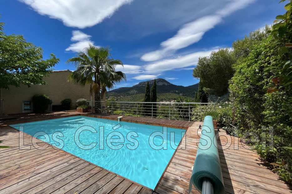 En exclusivité aux Clés du Soleil, Toulon Ouest, sur les pentes du Faron, portée par une vue dégagée exceptionnelle, villa meublée et équipée à la vente.<BR>À l'entrée d'un petit lotissement au calme, deux stationnements privés vous attendent a...