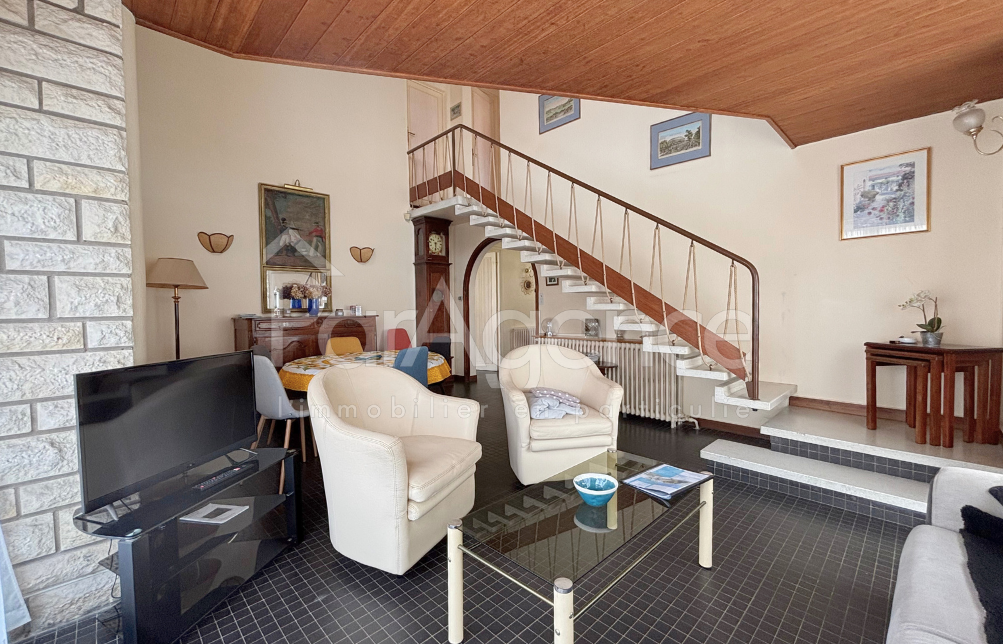 L'agence CHARTREUX IMMOBILIER vous présente, une agréable MAISON DE VILLE située à proximité de tous les commerces du CENTRE-VILLE et de la plage de la Grande Conche dans une rue calme au stationnement gratuit. Cette MAISON mitoyenne propose :