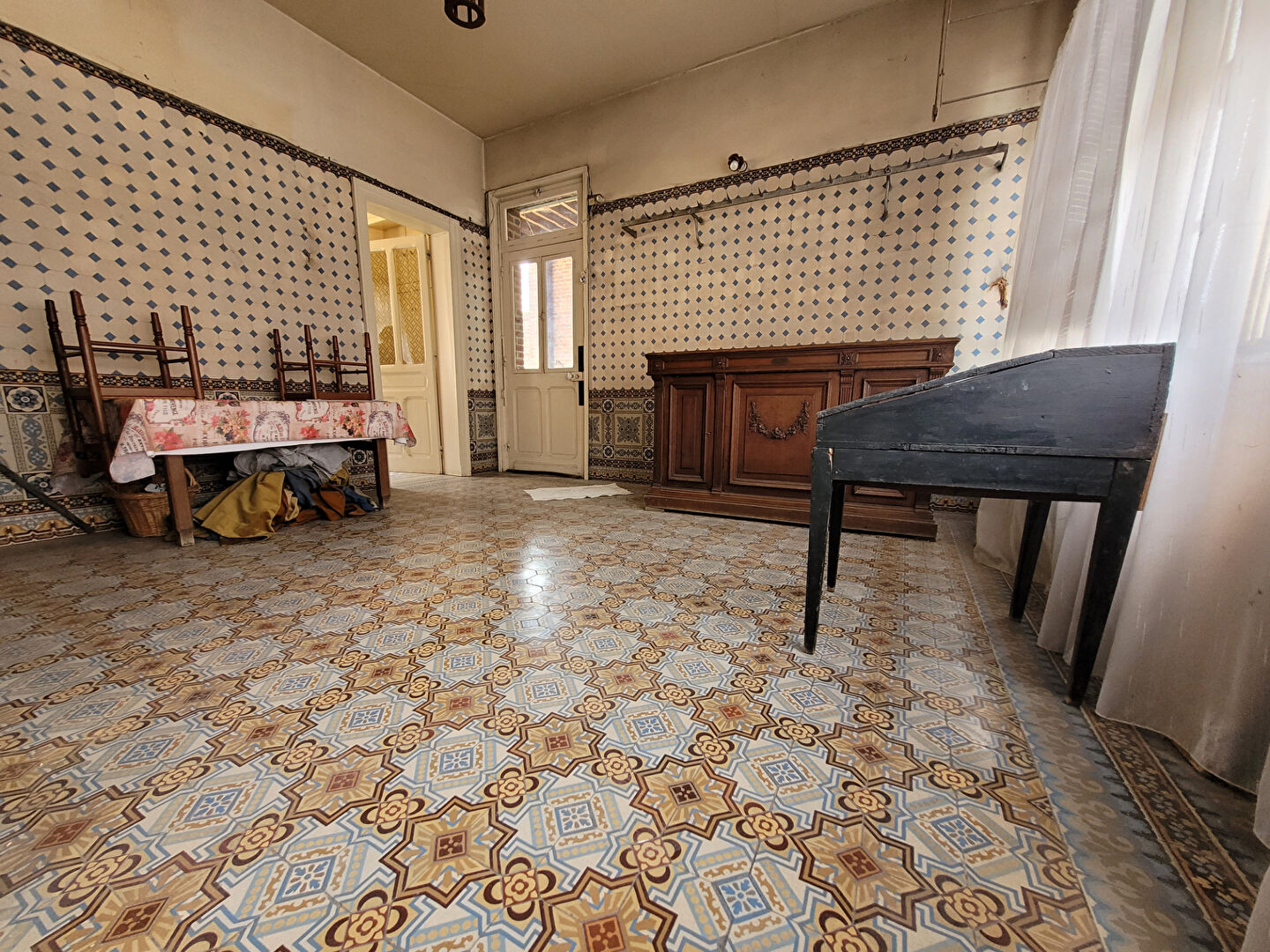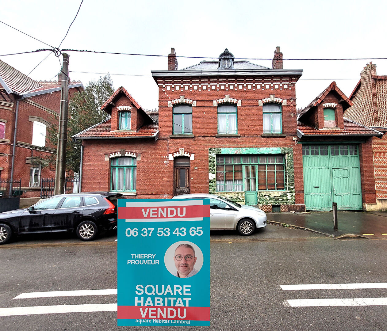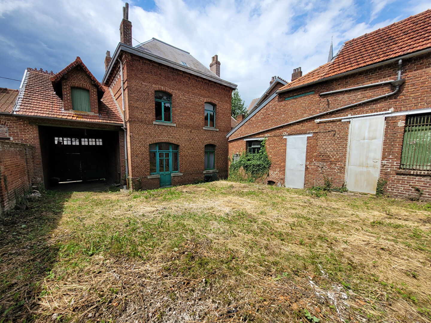 Maison de caractère à rénover, située à 5 minutes de Cambrai, comprenant une entrée, cuisine ouverte sur séjour, bureau, salon, buanderie, w-c.