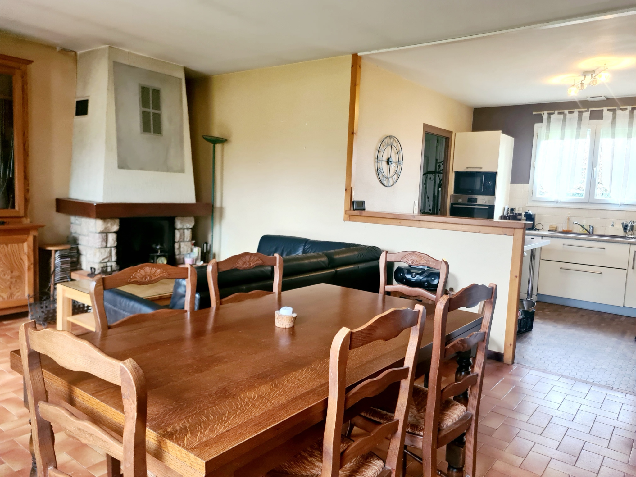 Elle se compose d' une cuisine équipée semi ouverte donnant sur un séjour avec cheminée. Trois chambres spacieuses avec quelques travaux de décorati...