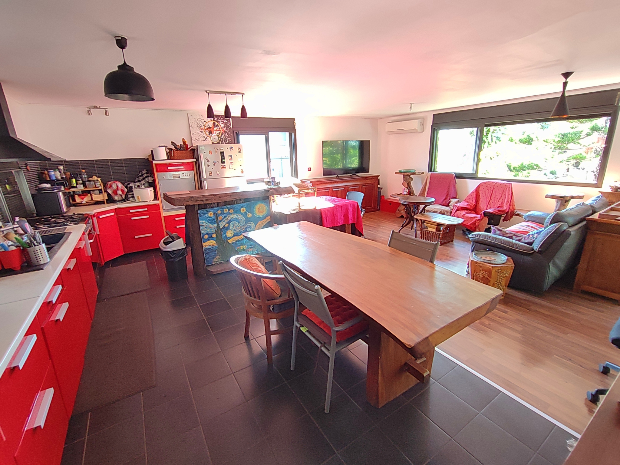 Espace jour de 32 m2 environ avec cuisine équipée
