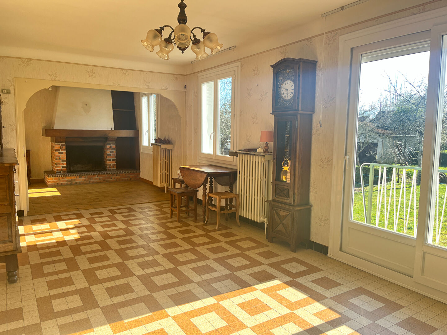 Maison avec sous-sol sur jardin de 1332 m², comprenant véranda, séjour salon avec cheminée, cuisine (ouverture possible), 3 chambres dont une avec cabinet de toilettes, salle d'eau wc, cave. Sous-sol avec garage atelier, chaufferie, débarras.