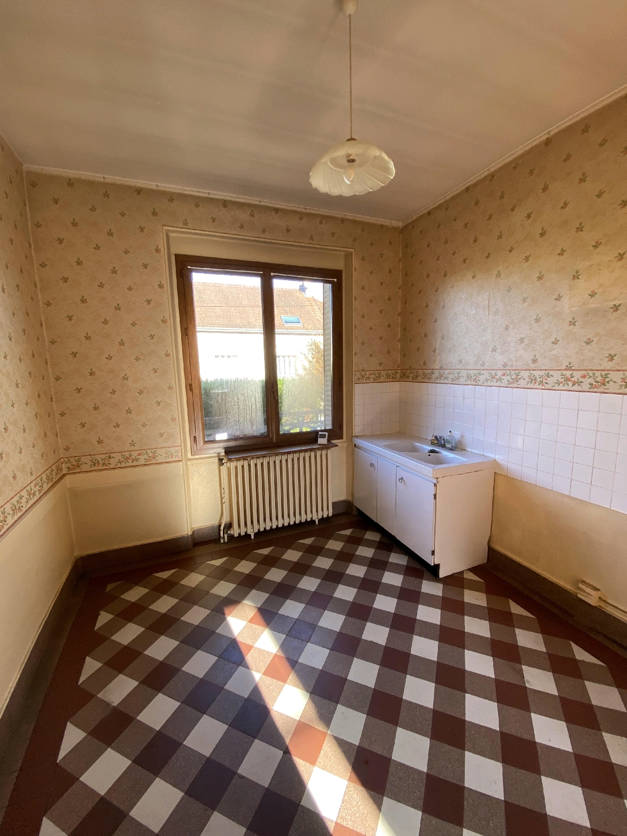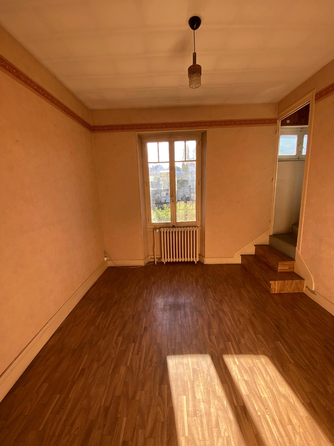 En retrait du centre, pavillon à rénover sur sous-sol complet comprenant : pièce carrelée, buanderie-cuisine d'été avec accès extérieur et garage avec atelier.