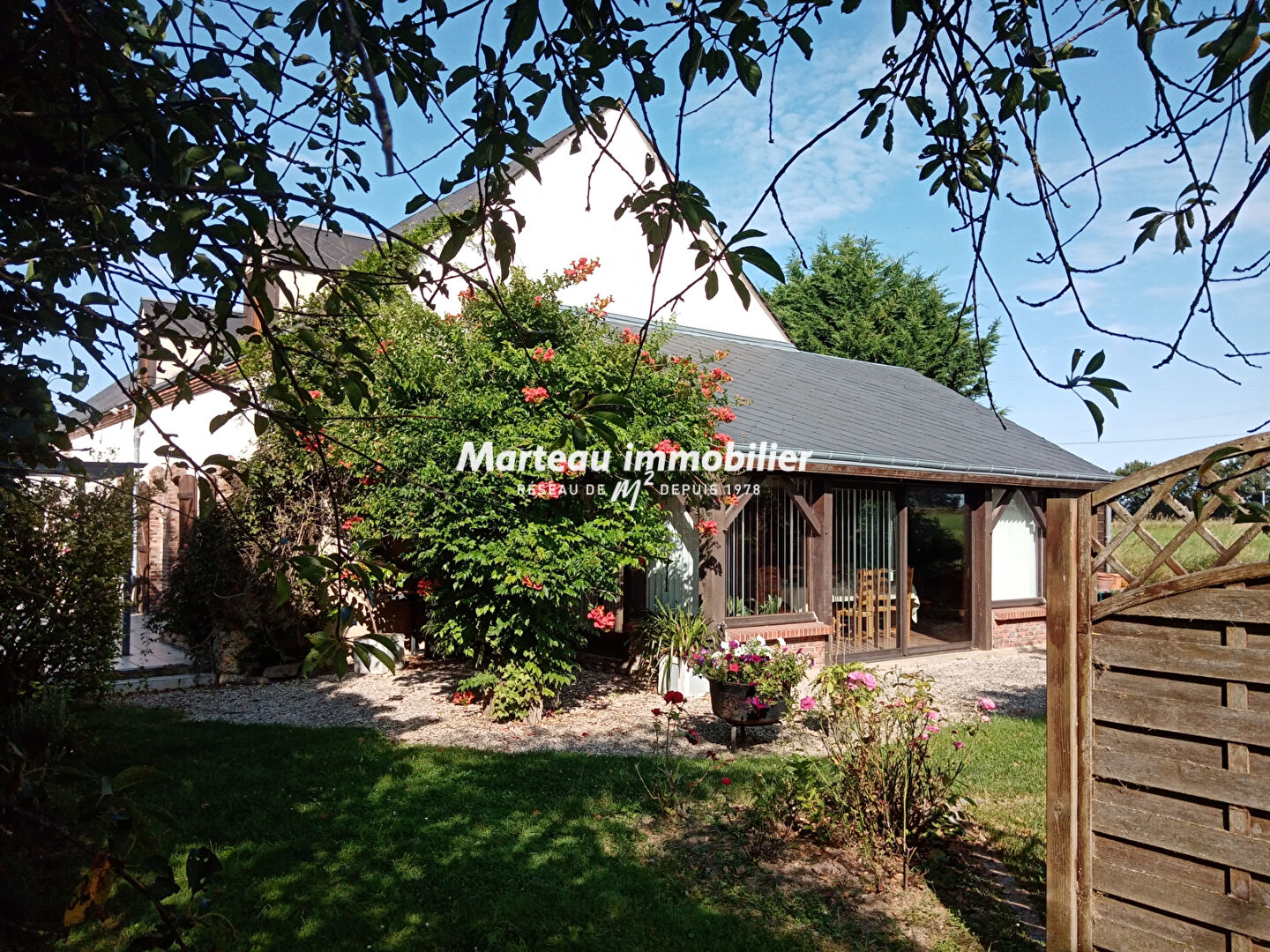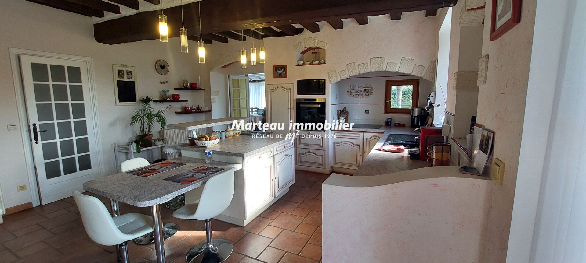 MARTEAU IMMOBILIER vous invite à découvrir cette superbe longère pleine de charme d'environ 350 m², nichée au coeur d'un environnement paisible et verdoyant, sur un magnifique terrain arboré d'environ 5 000 m².