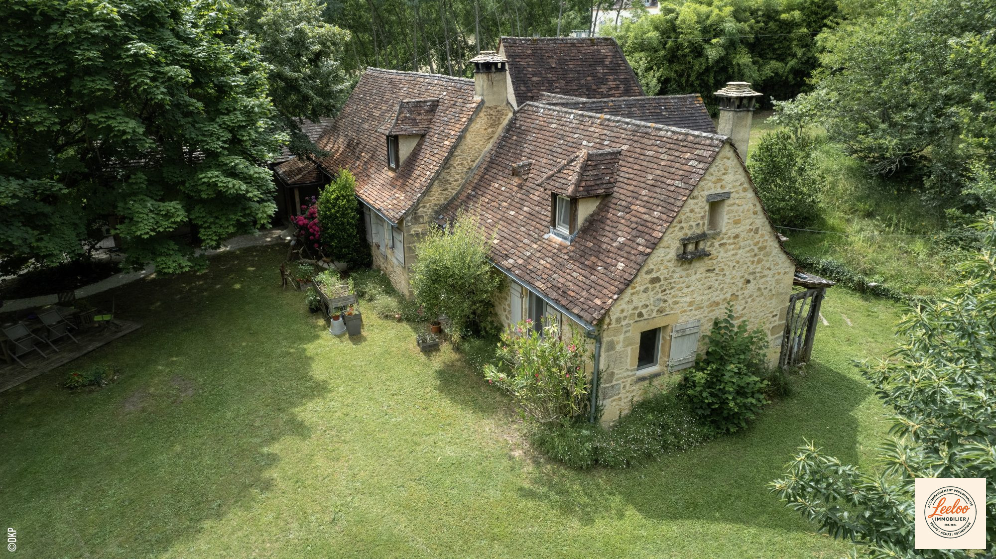 A39800TP24 - Située dans un environnement privilégié, cette charmante maison en pierre typique du Périgord vous séduira par son cachet, son cadre naturel exceptionnel et son vaste terrain plat - une rareté dans la région.