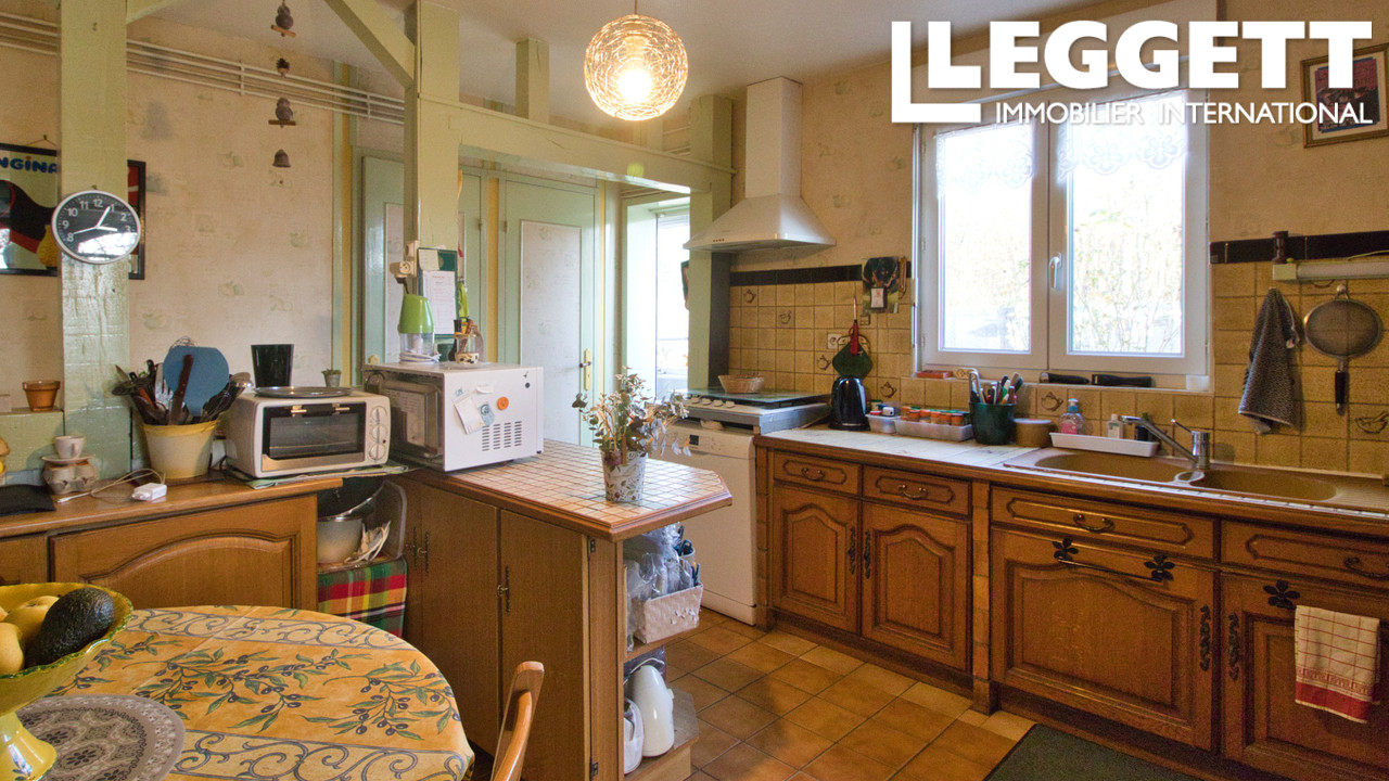 Maison 99m² comprenant : cuisine -salle à manger avec cheminée et four à pains, tomettes, salon avec cheminée d'ornement , tomettes, chambre avec cheminée , tomettes, deuxième chambre. Grenier aménageable. Chauffage central fuel. Double vitrage PVC. Chauf...