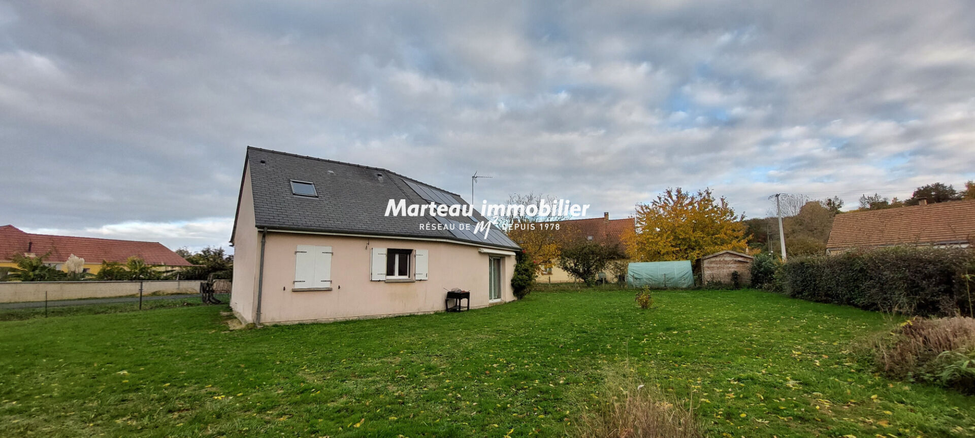 Découvrez ce pavillon de 2003 offrant une grande pièce de vie d'env. 48 m² avec cuisine aménagée et équipée, 1 chambre en rez-de-chaussée et 2 chambres à l'étage.