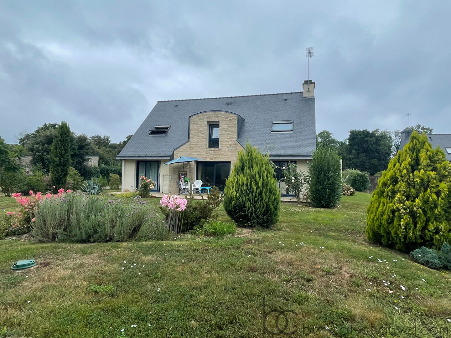 Sur terrain arboré et paysagé de 780 m² environ.