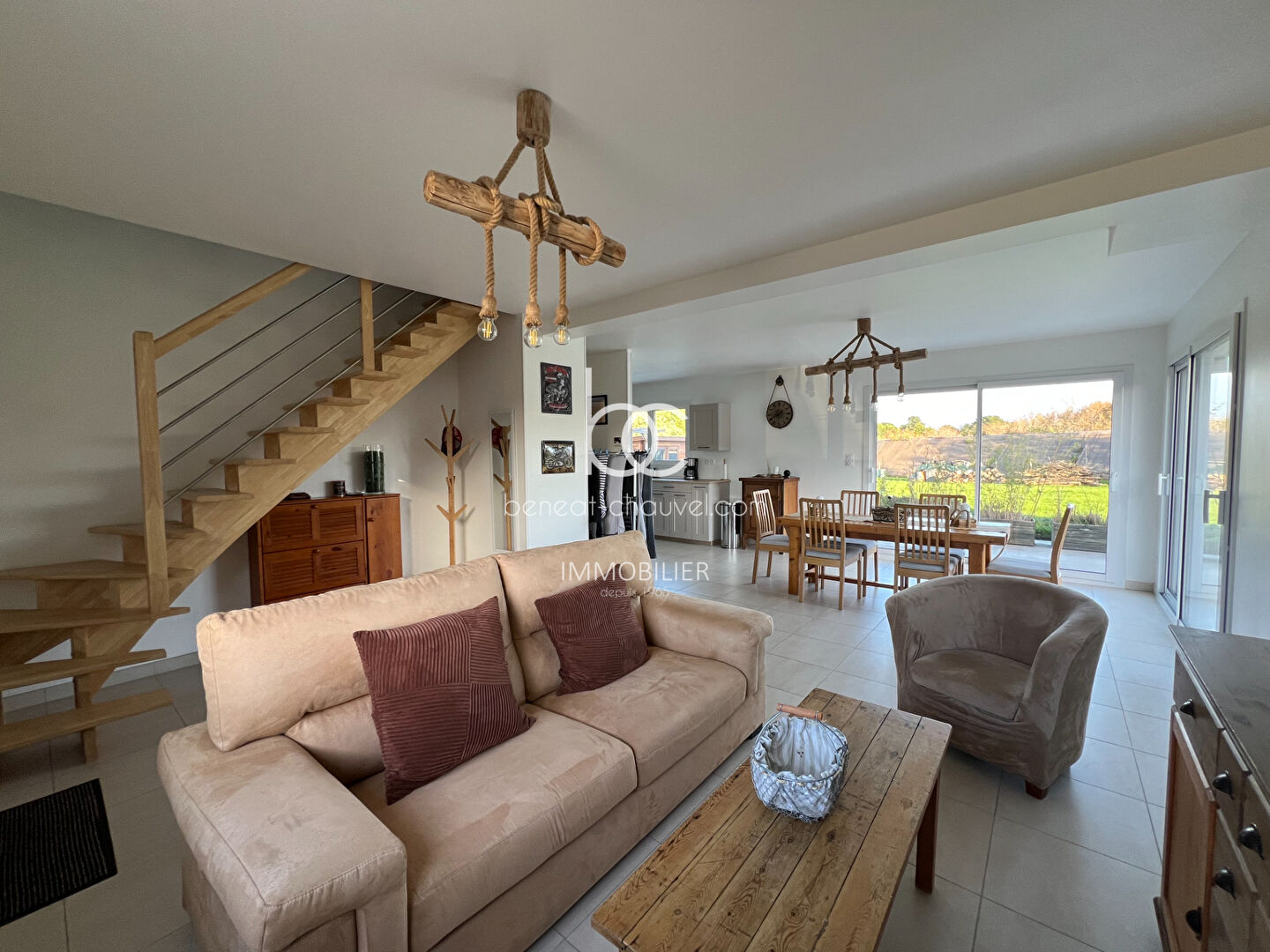 En passant la porte d'entrée, vous découvrirez un vaste salon-séjour avec...