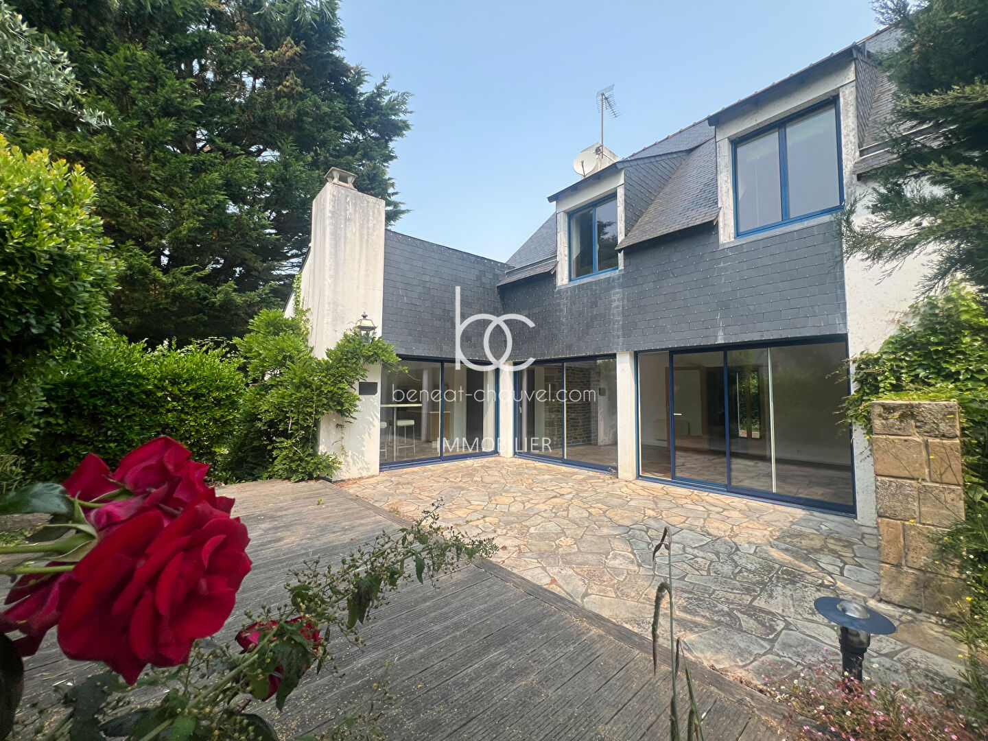 SARZEAU campagne, située au calme d'une impasse à mi chemin entre la plage et le centre bourg, une belle maison familiale offrant des volumes généreux et une agréable luminosité avec une exposition plein sud. Cette propriété comprend :