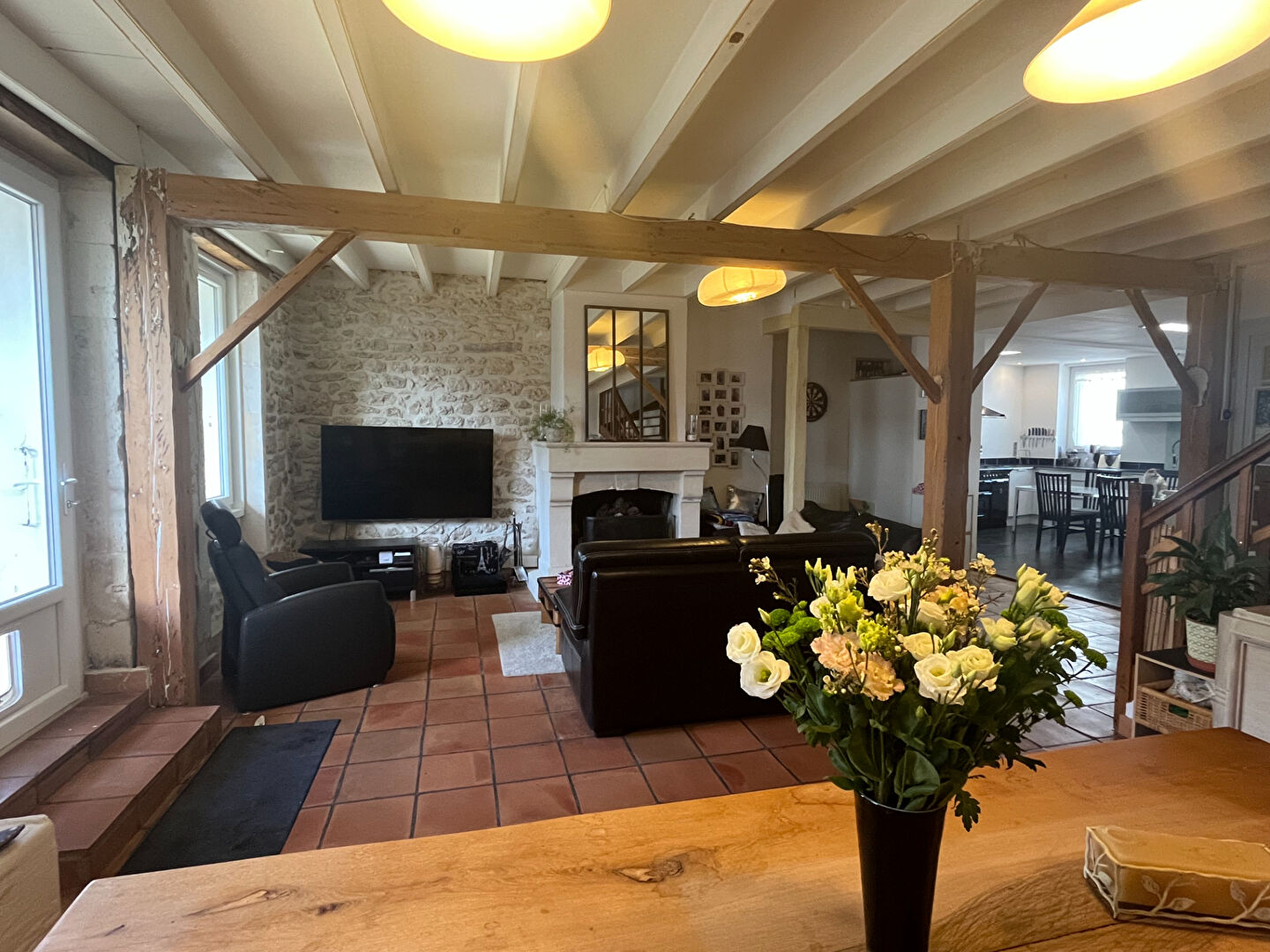 Dès l'entrée, le rez-de-chaussée s'ouvre sur une spacieuse et chaleureuse pièc...