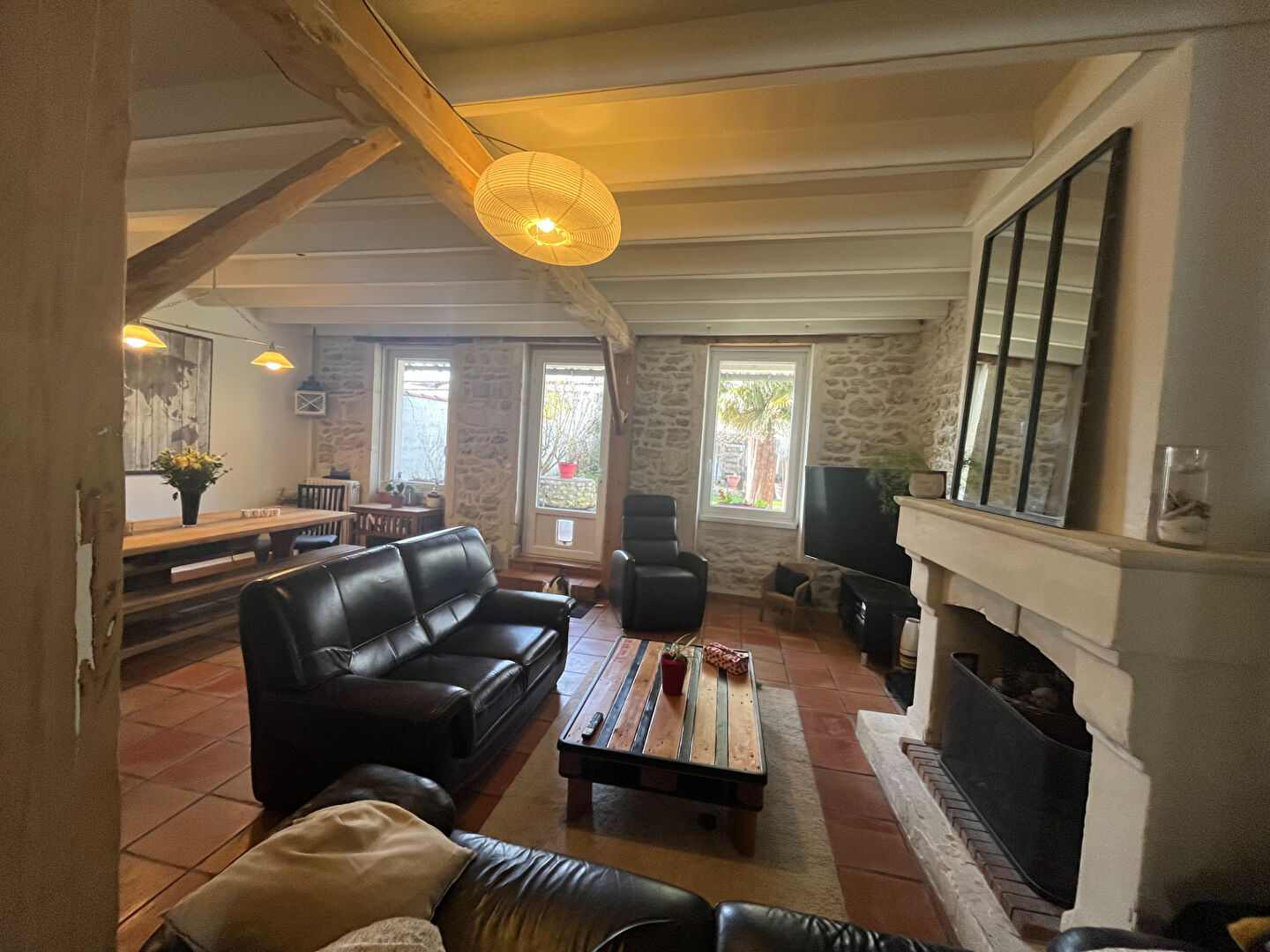 Située dans l'hyper centre de Saujon, cette maison entièrement rénovée avec goût séduit par son équilibre parfait entre charme, confort et emplacement privilégié.