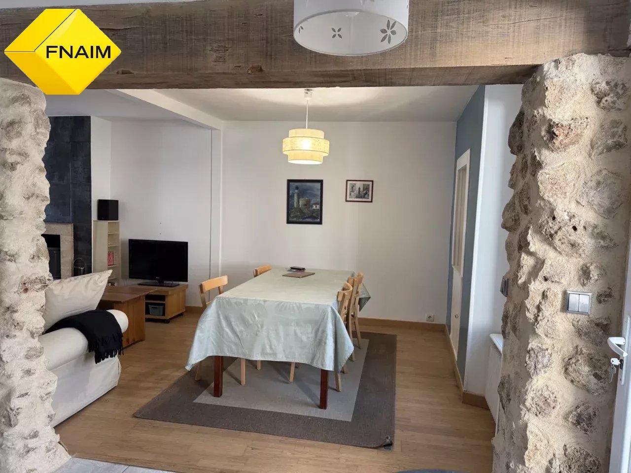 En centre village, très belle maison de caractère 7 pièces, charme de l'ancien garanti, comprenant : entrée très spacieuse, séjour salon donnant sur terrasse, cuisine équipée donnant sur une deuxième terrasse, wc, atelier, 1er étage grande chambre, salle ...