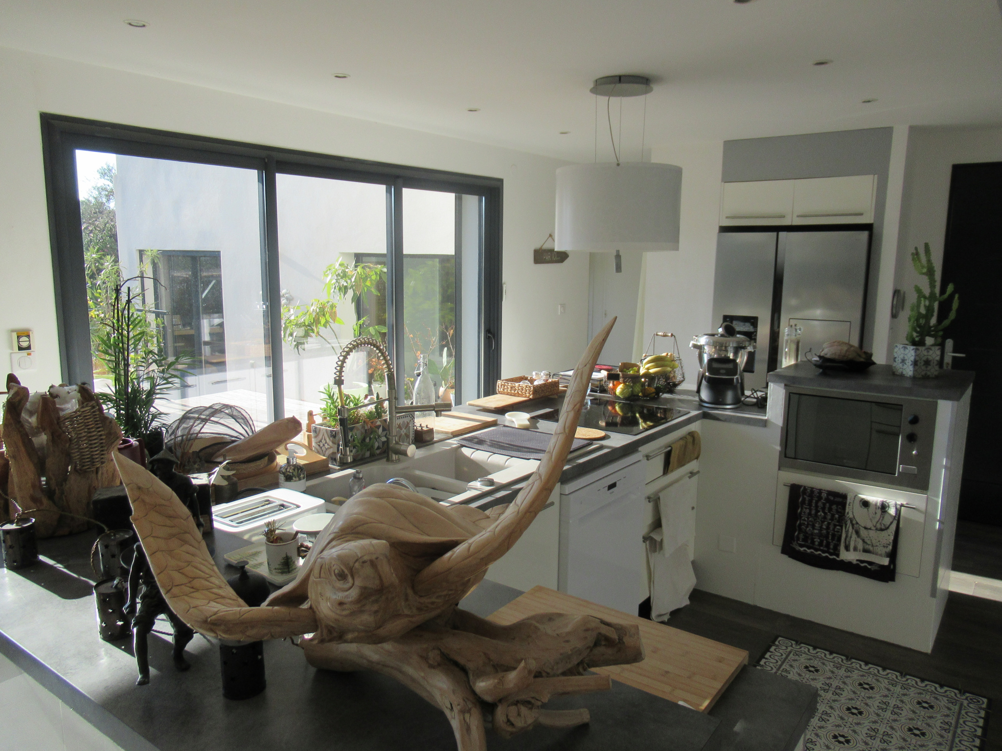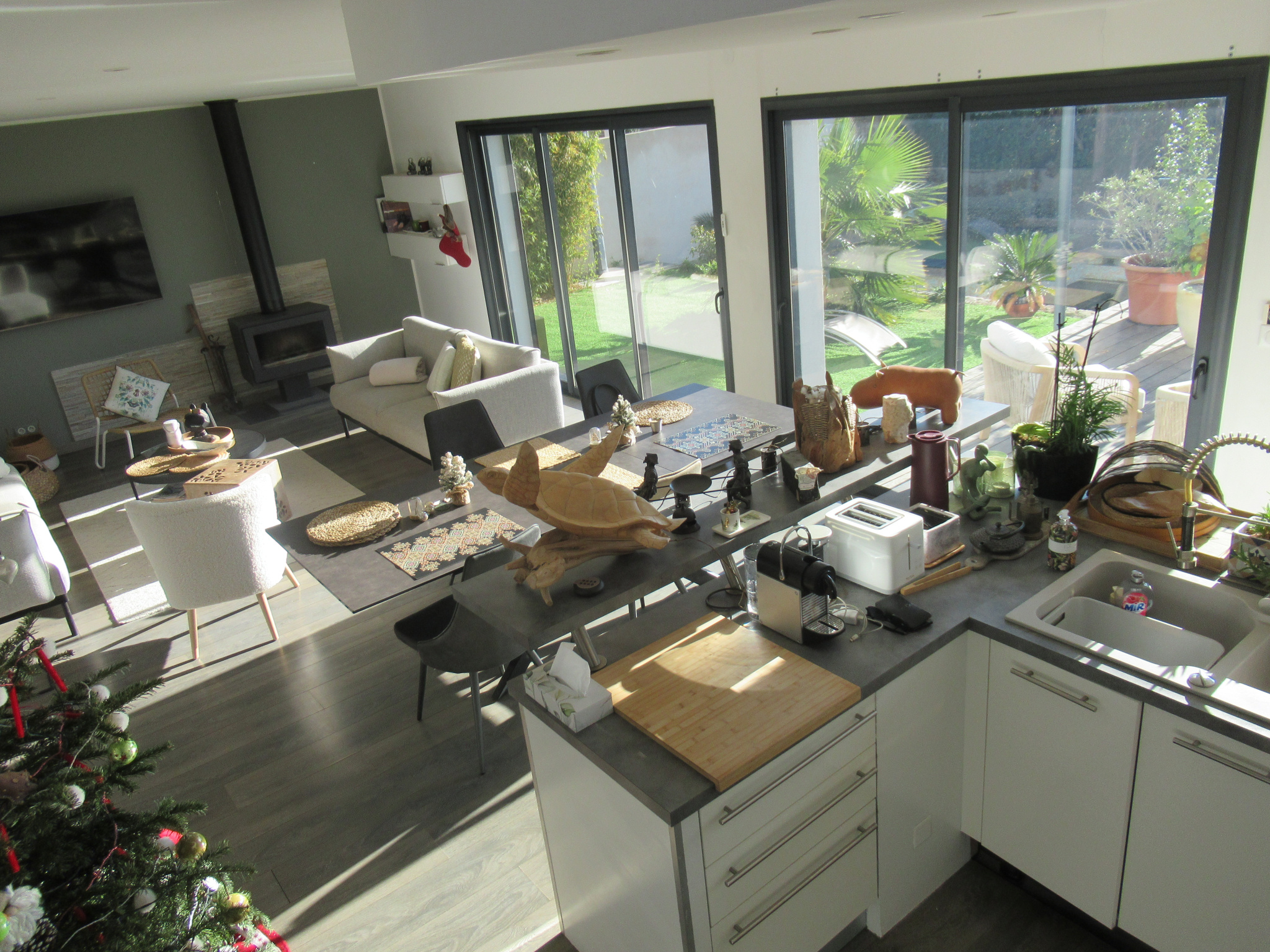 Pensée par les propriétaires dans une logique de fusion avec la nature, la maison d’environ 200 m² (180 m² habitables et dépendances) répartis sur deux niveaux incarne un art de vivre lumineux et profondément apaisant.