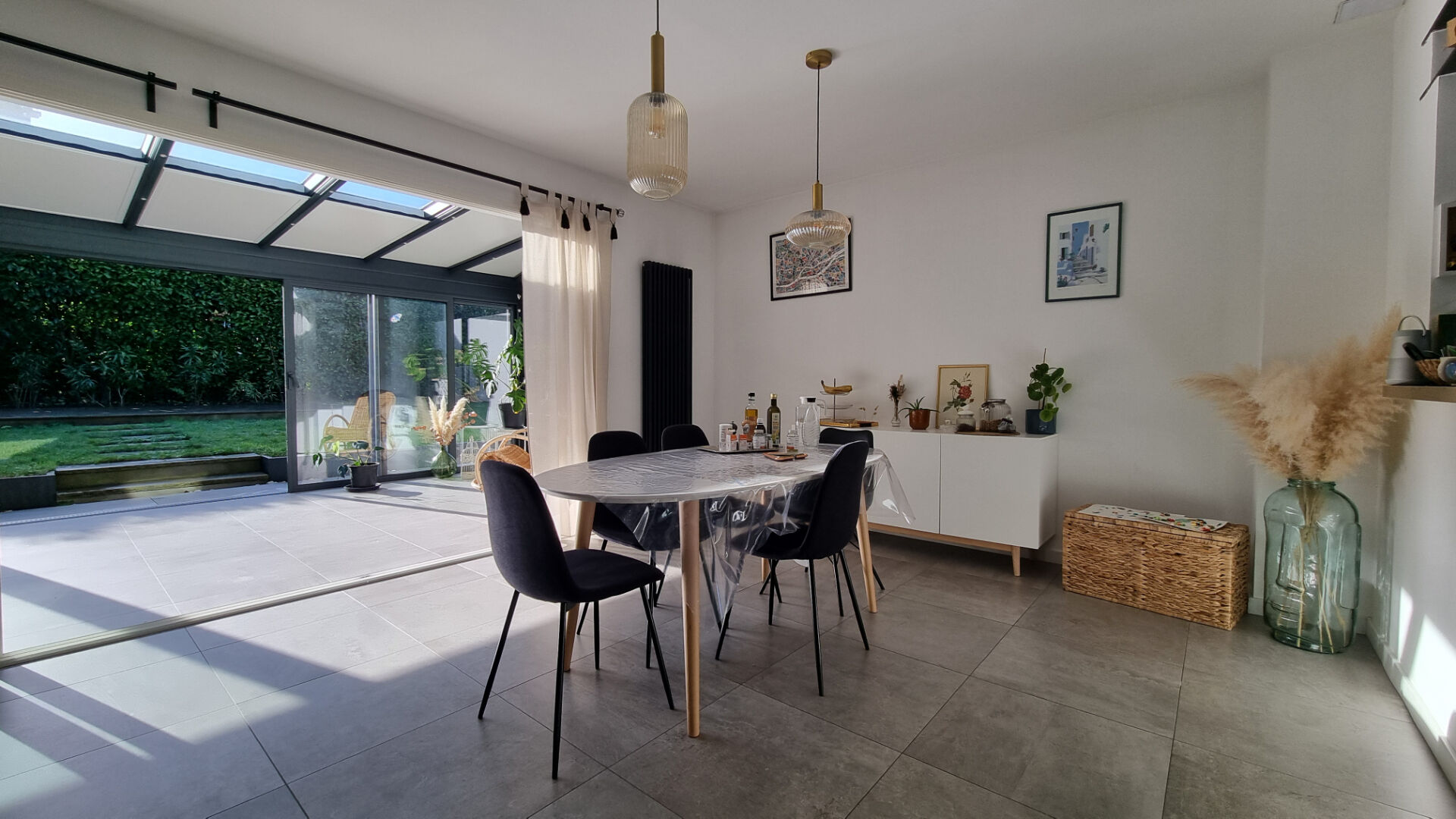 Située dans un environnement résidentiel, cette maison indépendante offre de beaux volumes et une belle luminosité. La pièce de vie, chaleureuse avec cheminée, s'ouvre sur une véranda agréable prolongeant l'espace vers le jardin.