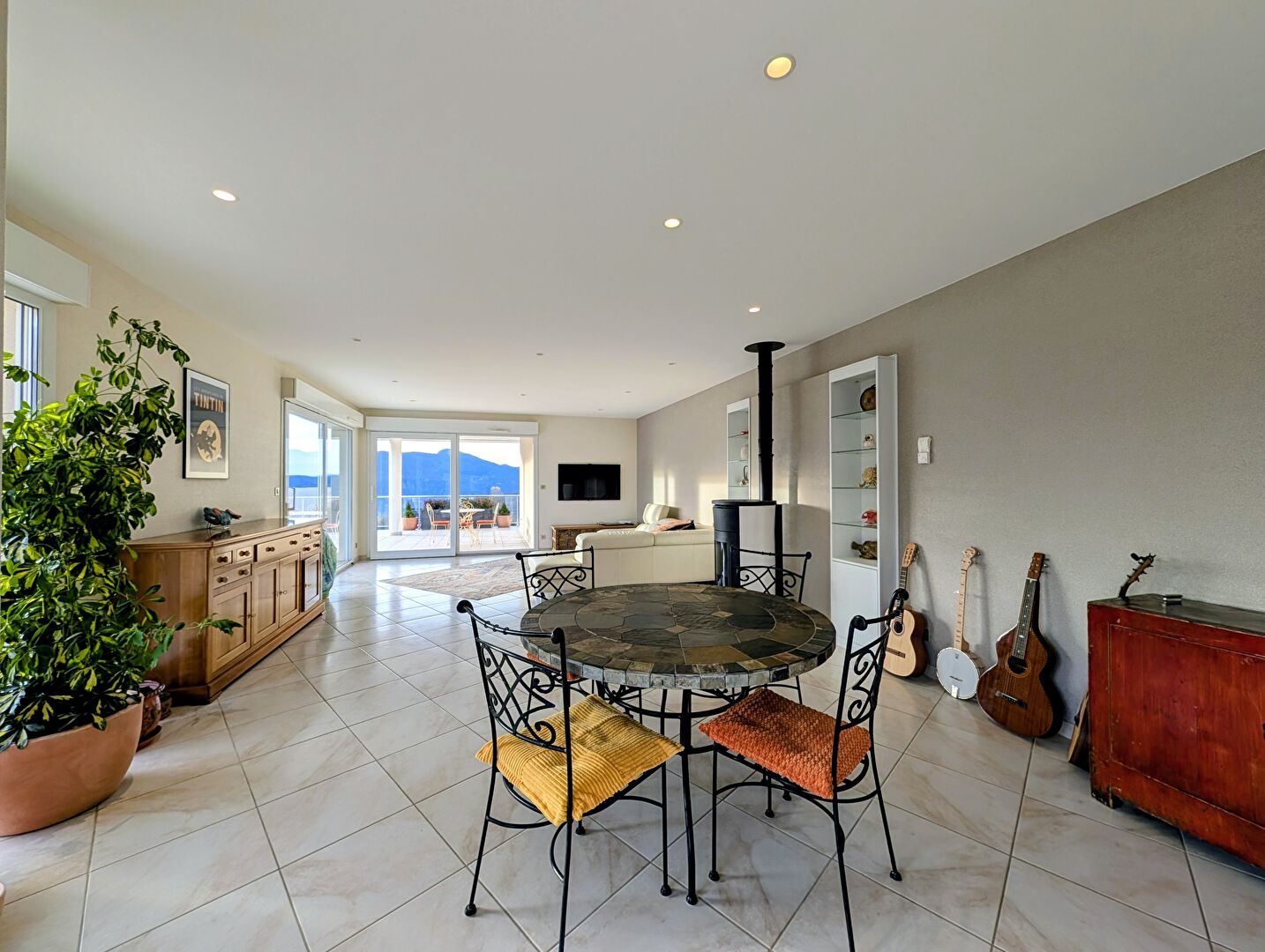 Hauteurs d'Aix Les Bains, sur la commune de Pugny Chatenod, voici une Villa d'environ 210m2 de plain pied construite en 2003 avec une vue panoramique sur le lac du Bourget