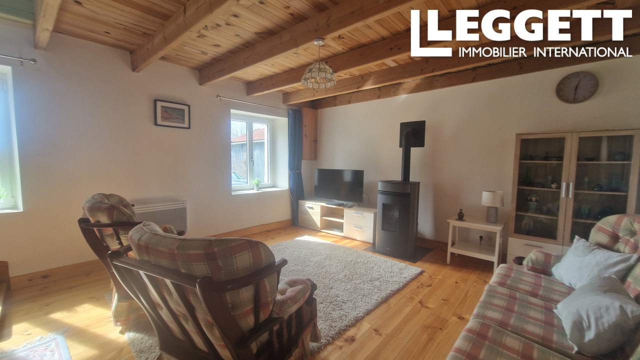 A35679JRD29 - Niché au coeur de Scrignac, cette maison de 3 chambres, soigneusement entretenue, offre une vue imprenable sur les Monts d'Arrée. Elle dispose d'une spacieuse cuisine ouverte et d'un salon d'été avec vue sur le jardin, d'...