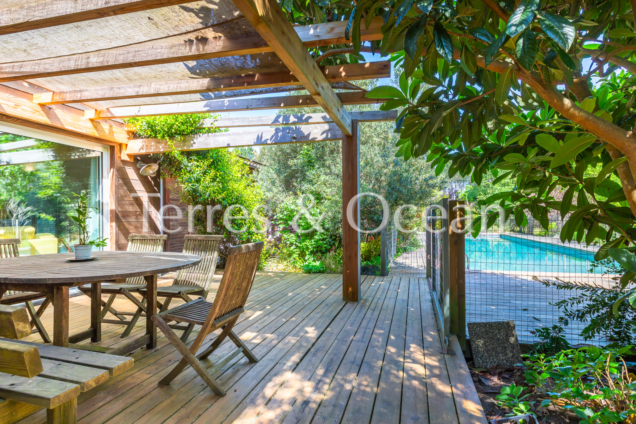 Nichée au milieu des pins, à l'abri des regards, découvrez cette belle villa aux volumes généreux s'intégrant parfaitement dans son environnement naturel.