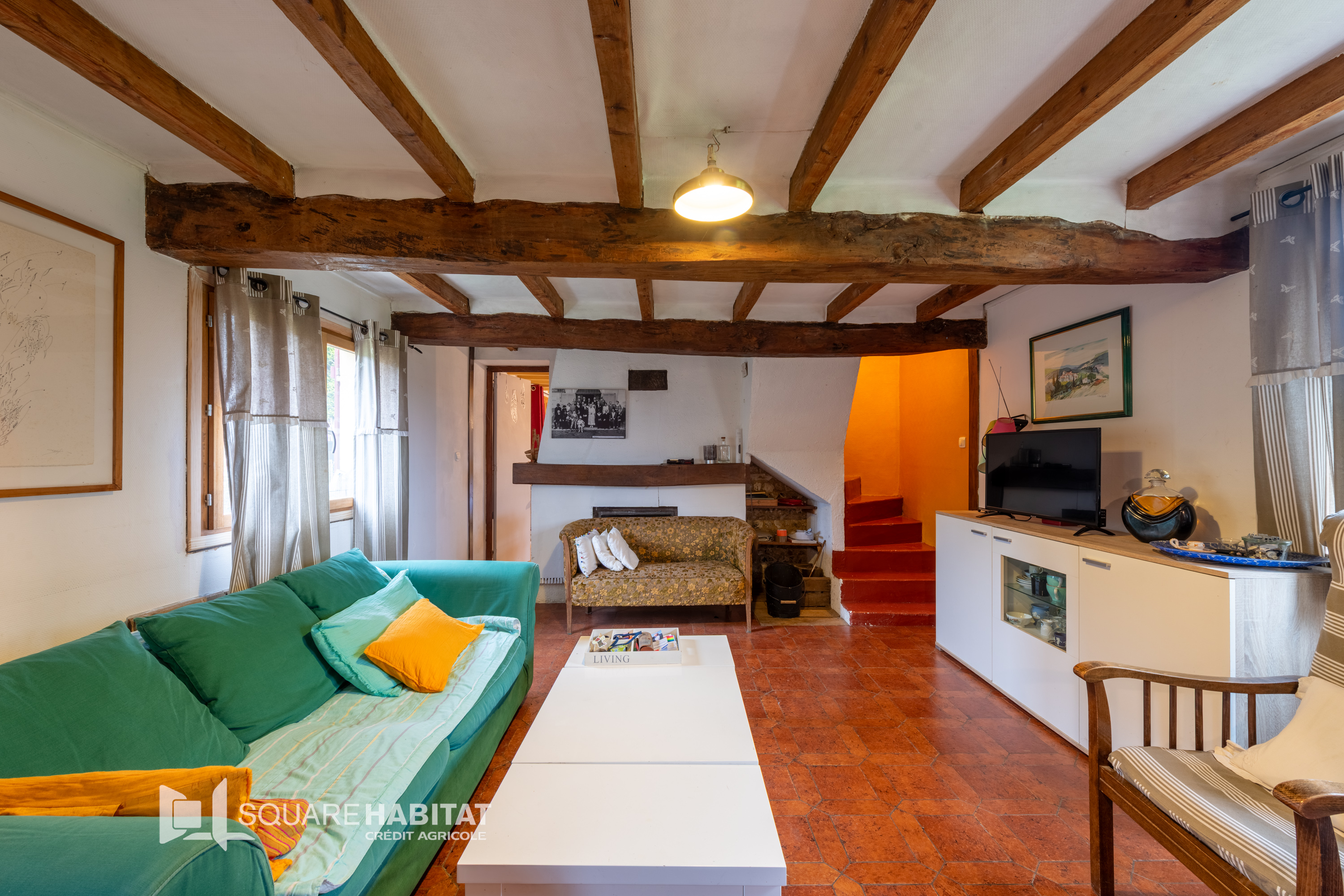 Dès l'entrée, vous découvrez un séjour avec cuisin...