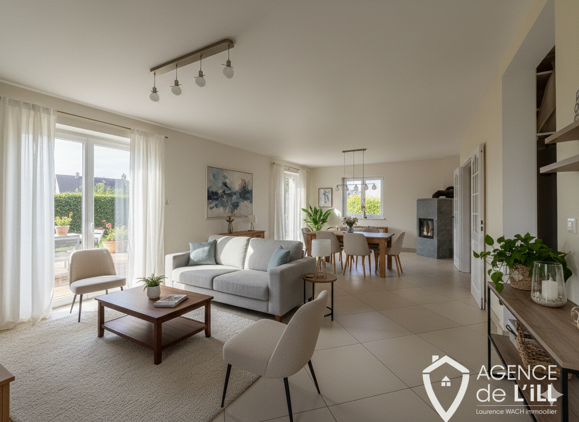 L'Agence de l'Ill Laurence Wach Immobilier vous présente en exclusivité cette maison parfaitement entretenue, offrant 126,6 m2 habitables sur un terrain clos et arboré de 764 m2. Conçue sur deux niveaux et disposant d'un sous-sol total, elle s...