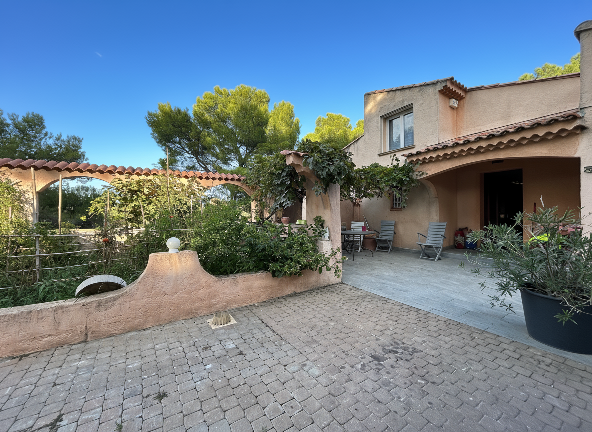Immo du cap, vous présente dans un cadre verdoyant et calme, au coeur d'une belle pinède, cette propriété rare alliant confort, espace et potentiel.
