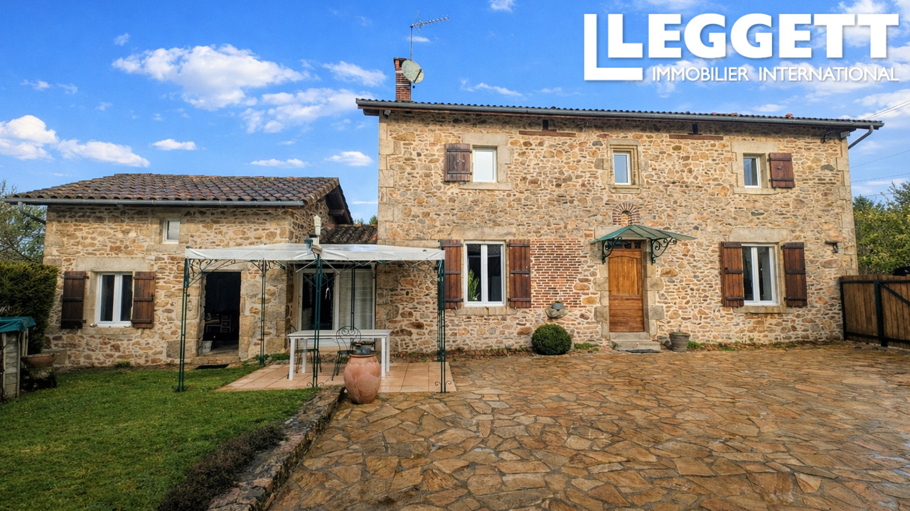 A42345JES87 - Une charmante propriété rénovée disposant d'une cour, d'une piscine hors sol, d'un jardin et de plusieurs dépendances, dont une grande grange. Possibilité d'acheter 4.5 hectares de prés avec rivière attenants.