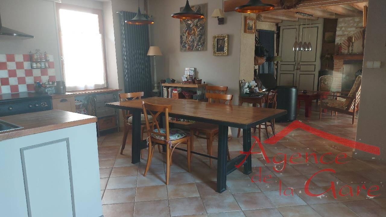 MAISON DE VILLAGE DE 179M² HABITABLE, comprenant au rez-de-chaussée une entrée, cuisine, salle à manger, salle d'eau, wc, couloir avec placard desservant un salon avec cheminée ouverte et une véranda servant de cuisine d'été avec un...