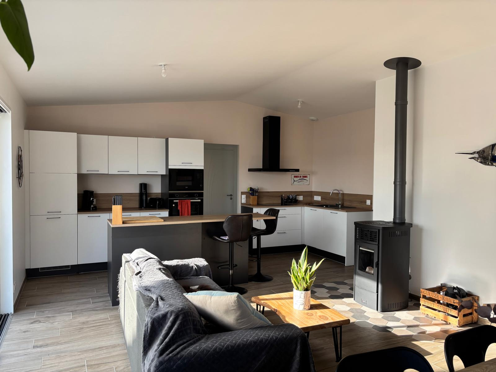 Découvrez cette maison récente qui allie confort, modernité et luminosité. Vous serez séduit par sa spacieuse pièce de vie d'environ 52 m2 avec une cuisine aménagée et équipée ouverte sur le séjour. Elle dispose de deux belles chambres, dont une suite ave...