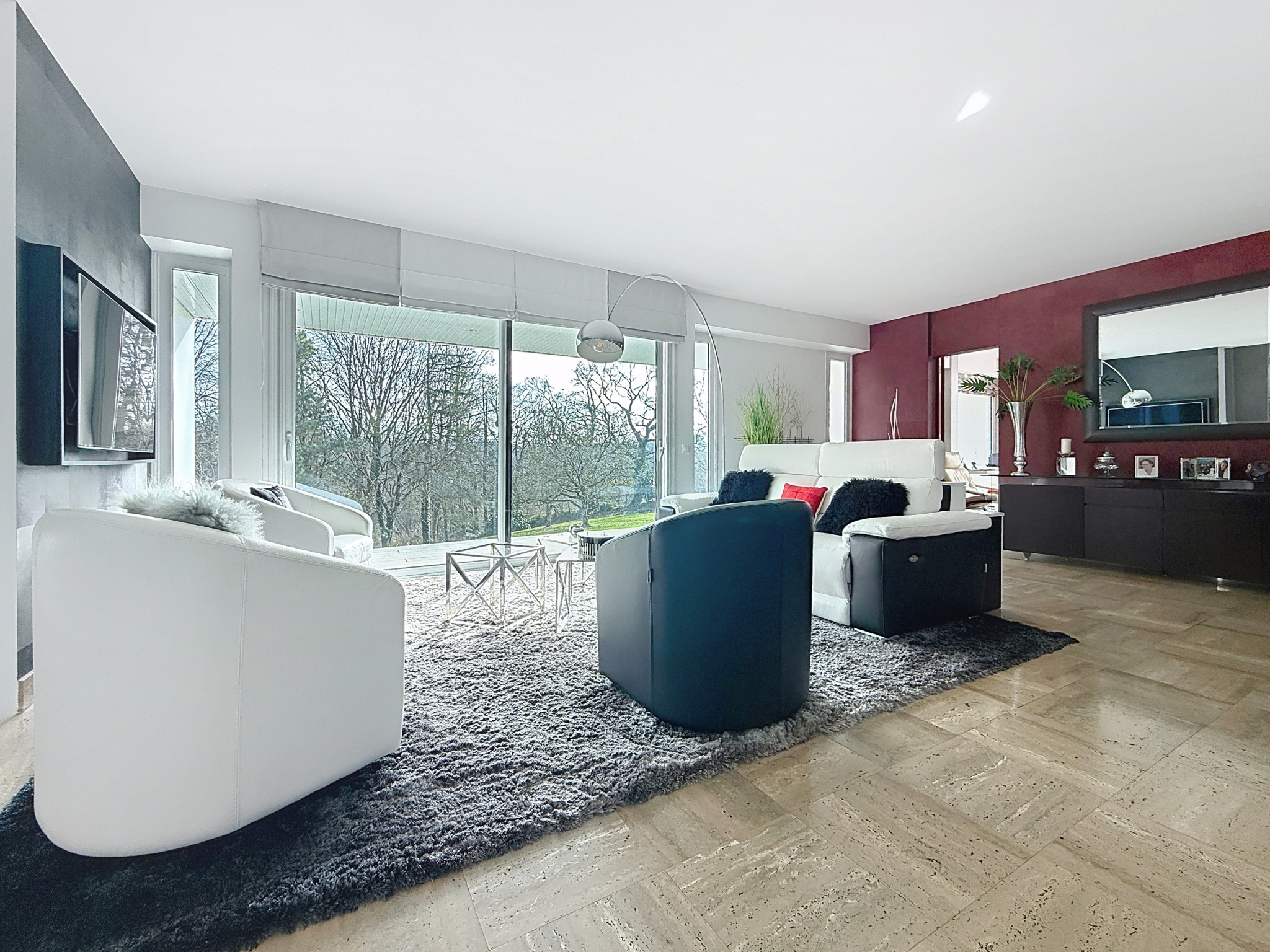 À seulement 2 minutes en voiture des commerces, découvrez cette superbe maison d'architecte réalisée par Eugène LESENEY datant des années 1970, entièrement rénovée, offrant une ambiance moderne et chaleureuse. Nichée au coeur d'un parc arboré et pays...