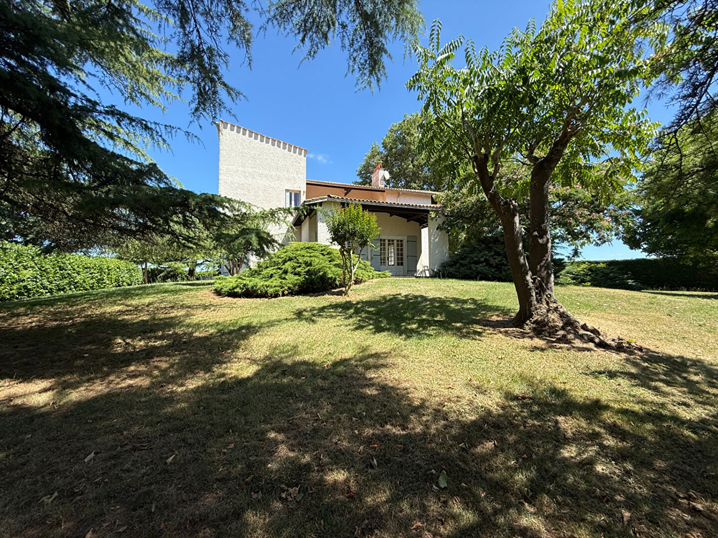 Entre Agen et Villeneuve/Lot, dans un secteur calme, bel ensemble immobilier composé d'une magnifique maison d'architecte de 1974 avec de beaux volumes d'e...