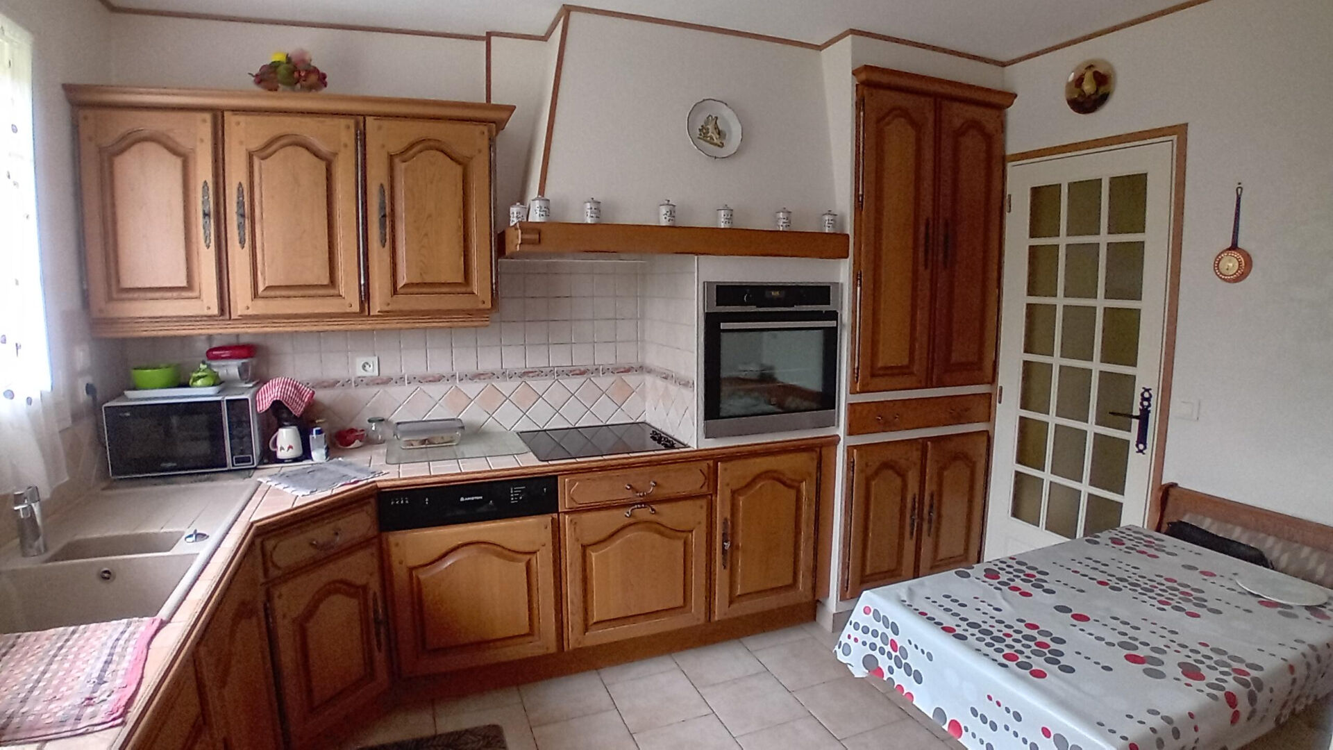 Maison de 6 pp en parfait état au calme sans travaux comprenant entrée, séjour salon avec cheminée insert, cuisine aménagée et équipée, chambre, sdd, placards, wc. A l'étage palier, 3 chambres, salle de bains avec wc.