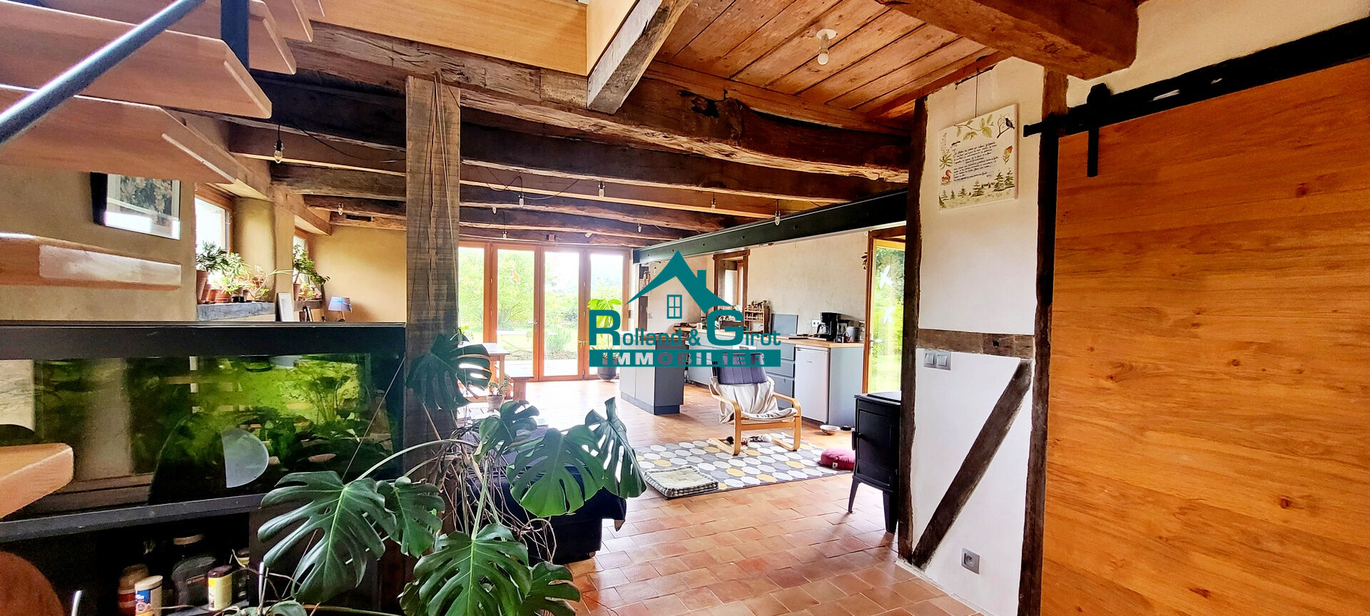 Baisse de prix !!!!!!! A 6 minutes en voiture du bourg de Saint-Aubin-d'Aubigné, cette magnifique longère rénovée avec goût et très atypique pourra vous combler de bonheur avec son intérieur chaleureux et son beau terrain de 1381 m². Au rez-de-chaussée, u...